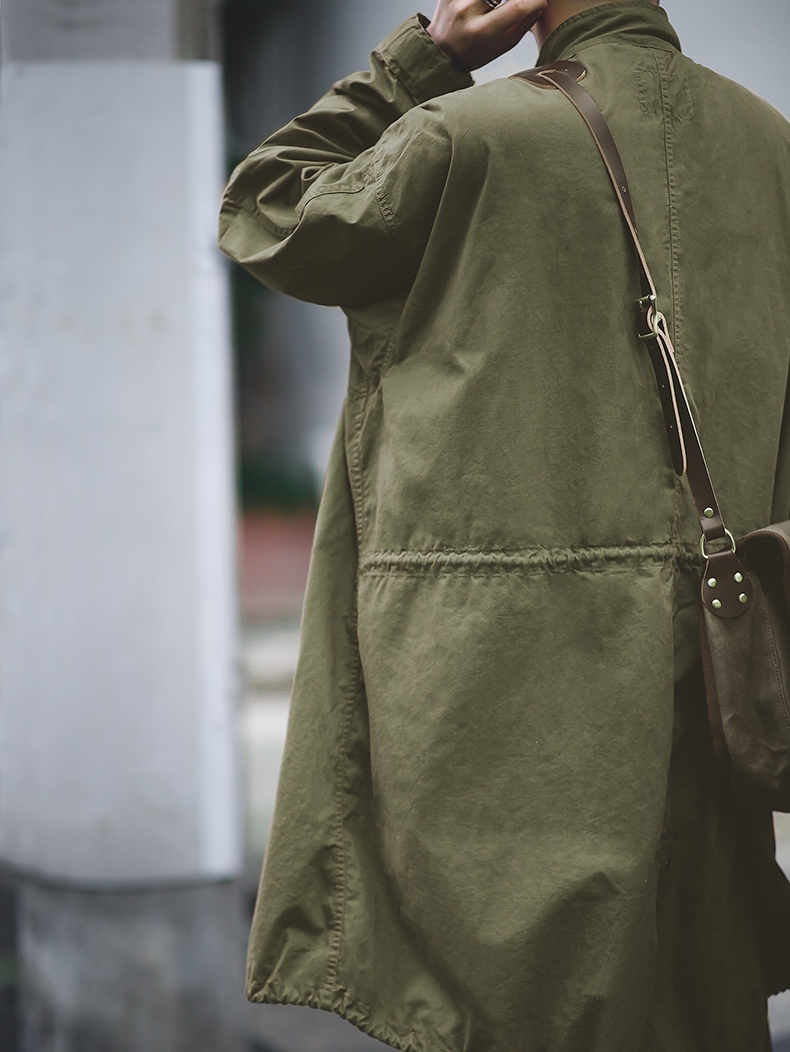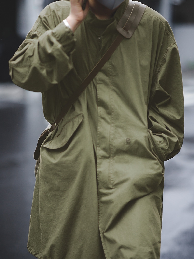 中长款围裹式系带风衣,很容易就能穿出气场。虽然版型简洁,但局部细节有很多,肩部挺肩的肩扣和袖子的可调节宽窄的扣袢。车缝走线细致,做工是丝毫不会马虎的。领口金属风纪扣装饰,防风又提质感。