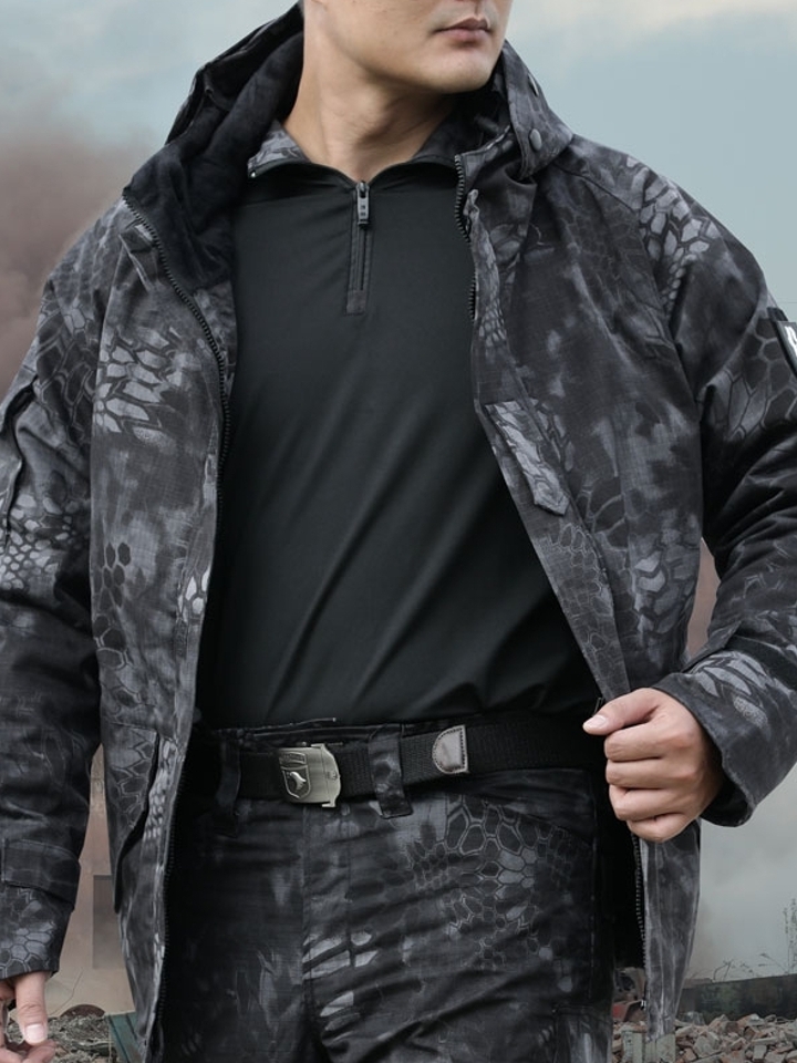 此番选用炫目迷彩的色调设计,彰显鲜明个性更加贴近自然,衣身选用优质棉涤的材质打造,更加柔软舒适贴近皮肤的同时透气性强,使身体持久干爽舒适,衣身选用高品质拉链经过实践检验持久顺滑。