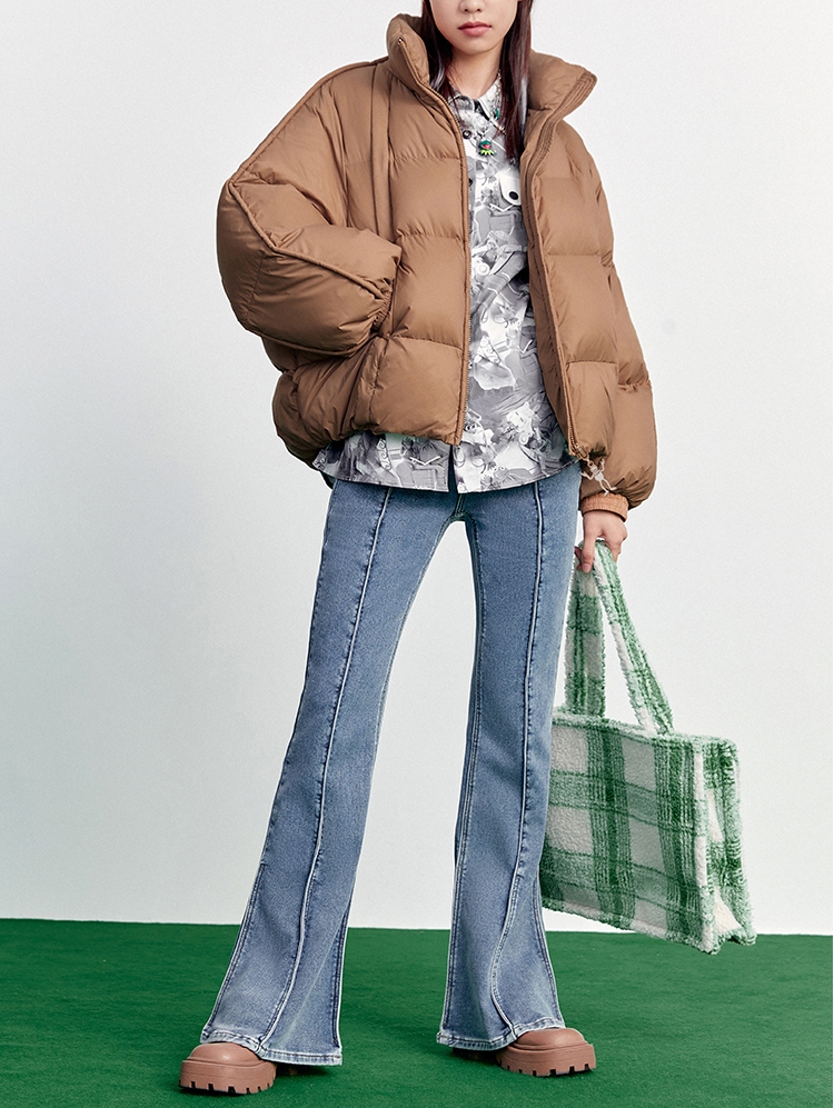 飞行夹克的版型配以羽绒服的功能,体现了设计的别具匠心。罗纹棒球领简洁利落,短款的版型不受约束,随性自然。