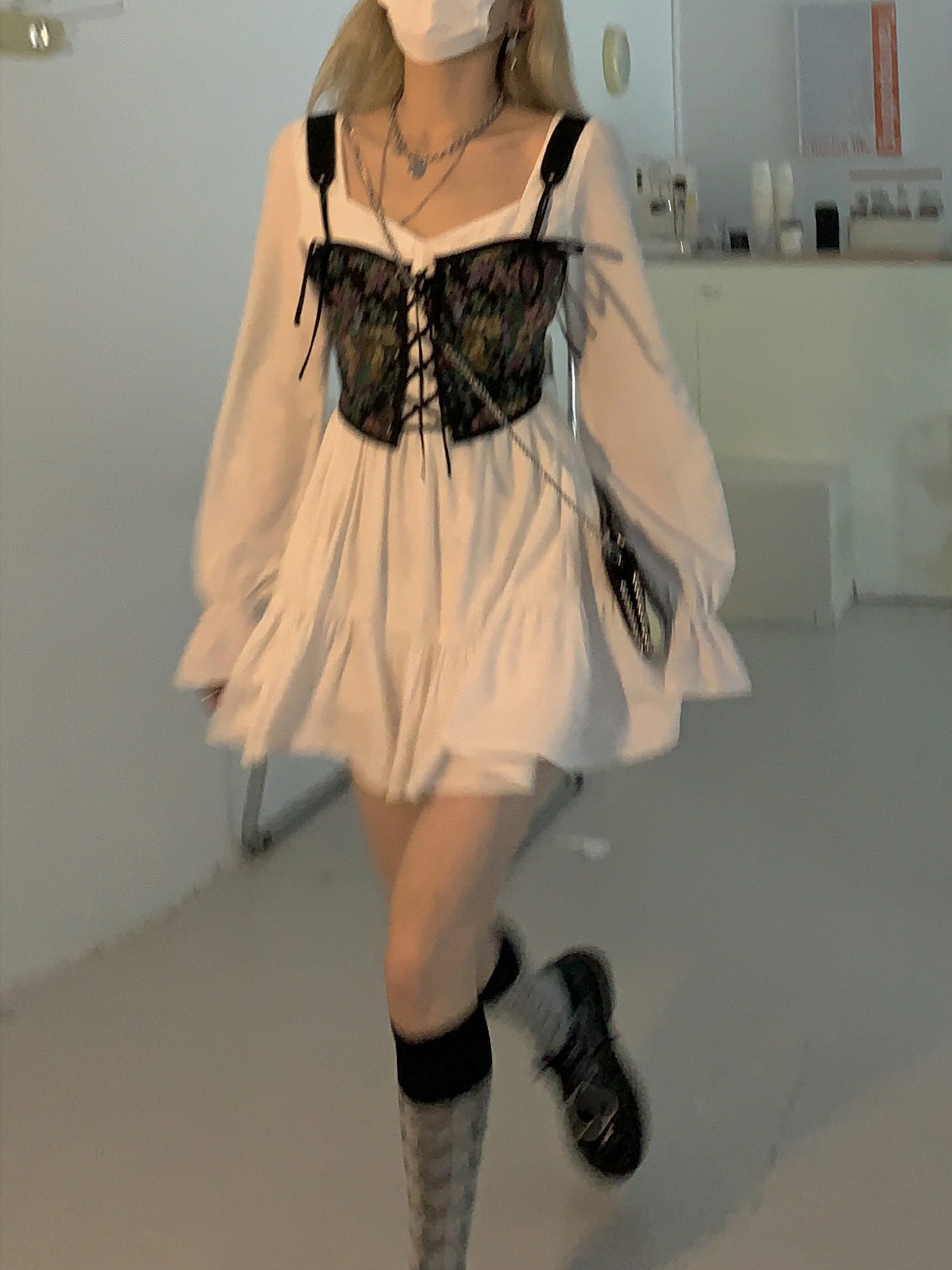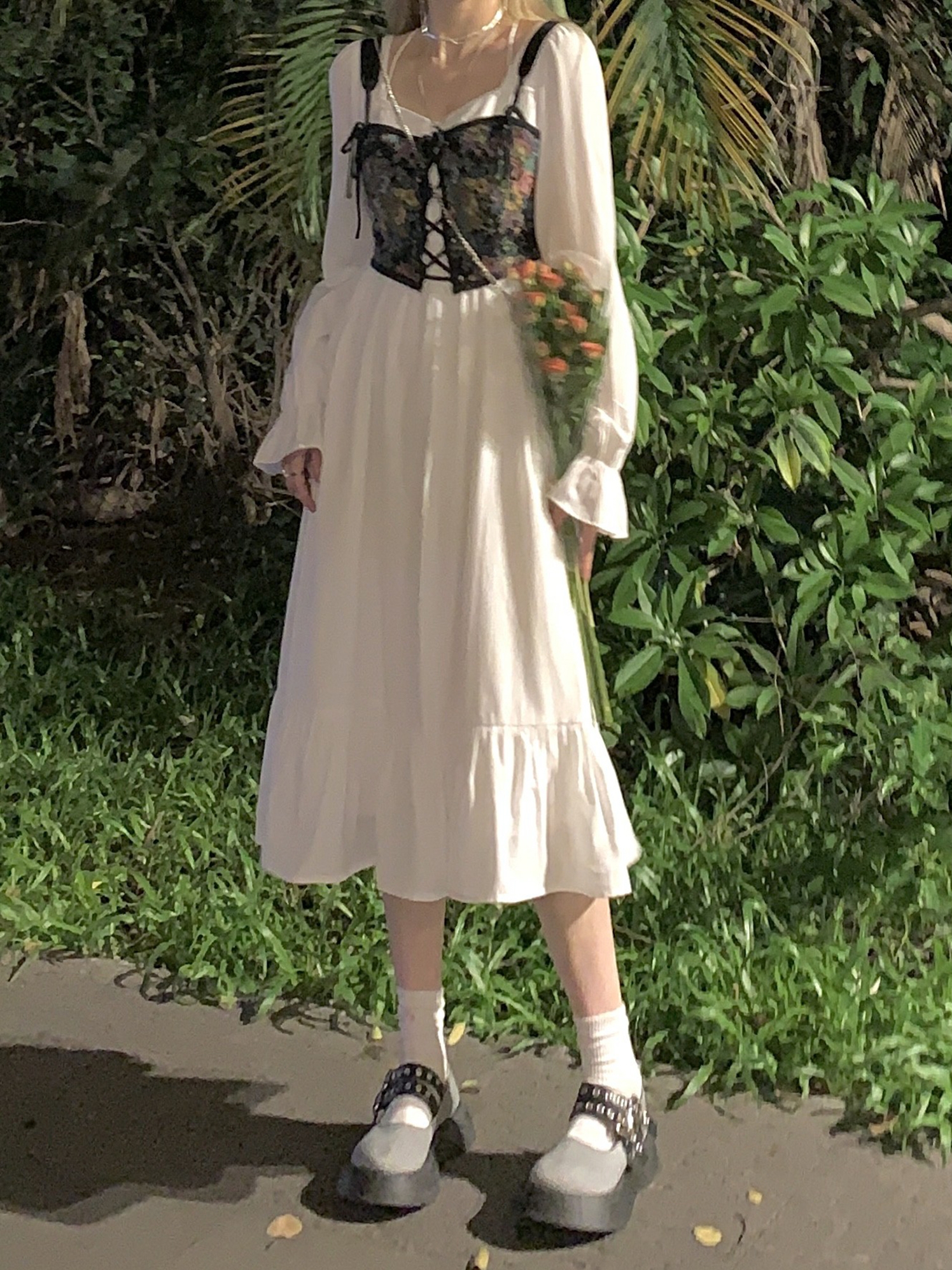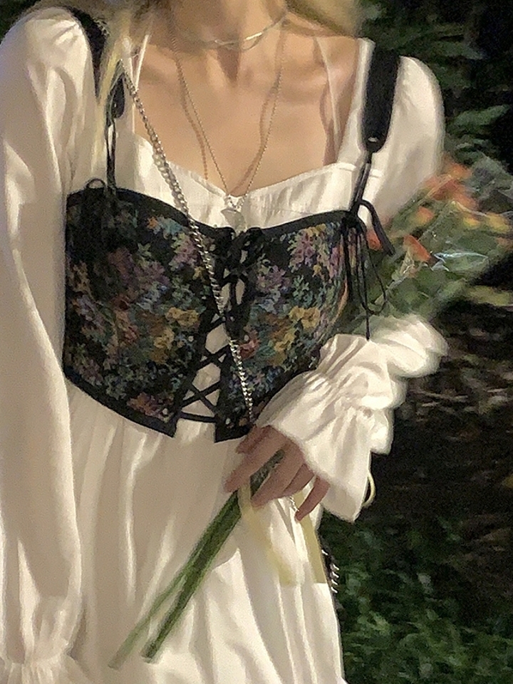 白色的连衣裙显简洁、简单,有着小女人的唯美感,方领设计衬托出锁骨的精美和颈部纤细,肩部两侧的精美刺绣花纹,有着浓郁的民族风气息,简洁的裙摆弧度优美,行走间多了份曼妙。