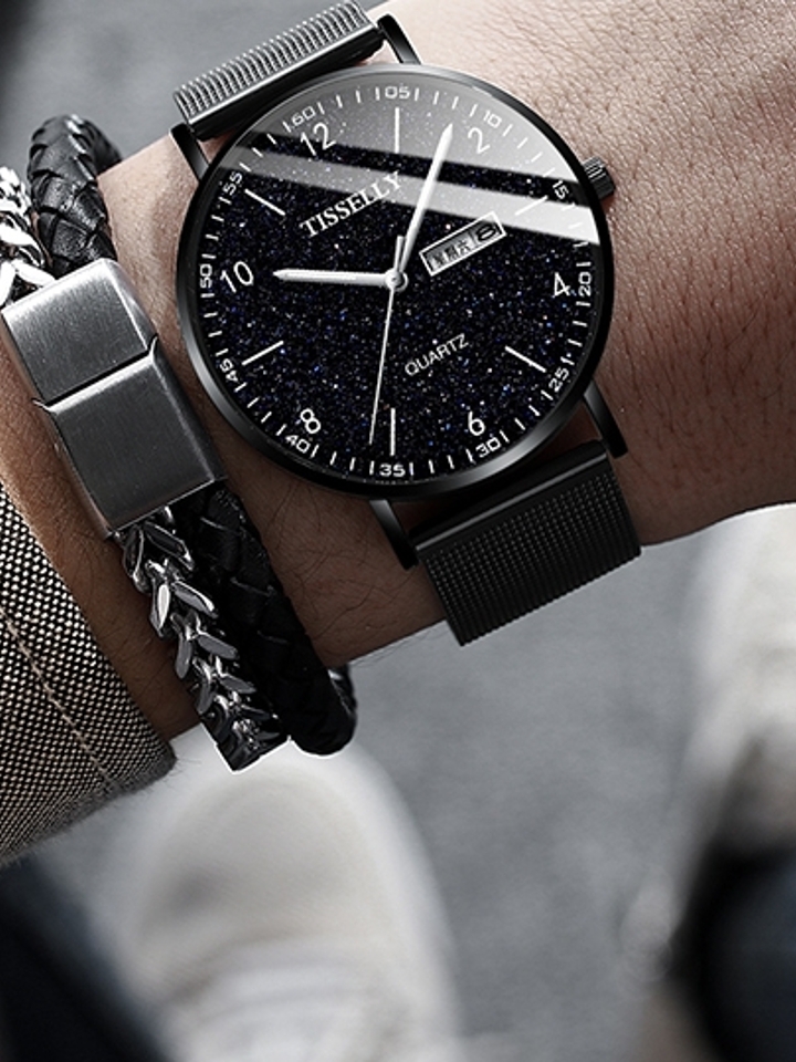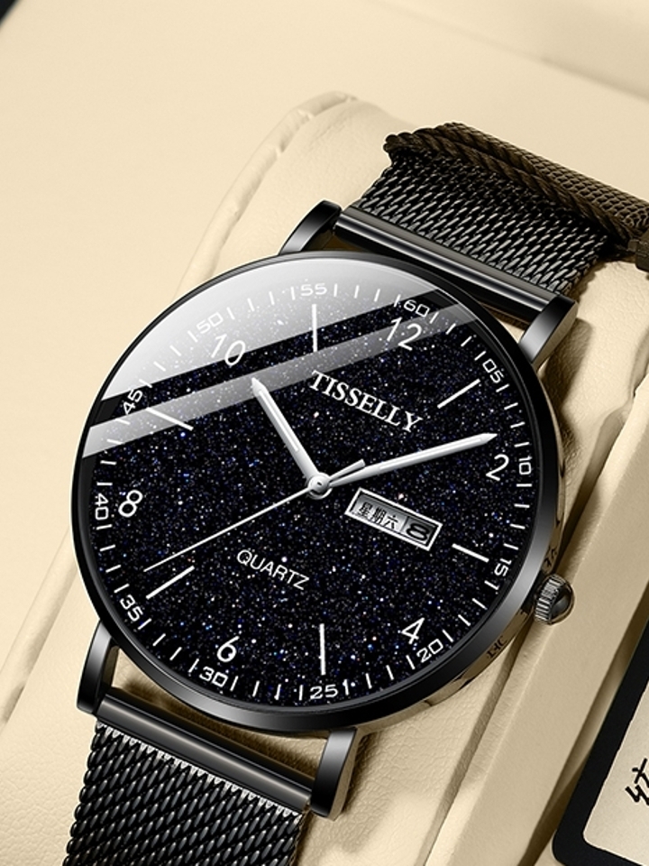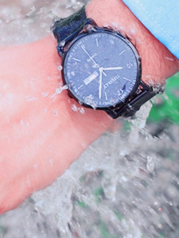 表身通体为黑色,表面设计简约大方,佩戴它显得人非常时尚,而且看起来还会年轻许多。表带与镜面的颜色搭配适宜,带上这表尽显男人儒雅气质。这款表还具有防水功能,佩戴它洗澡游泳都十分方便。
