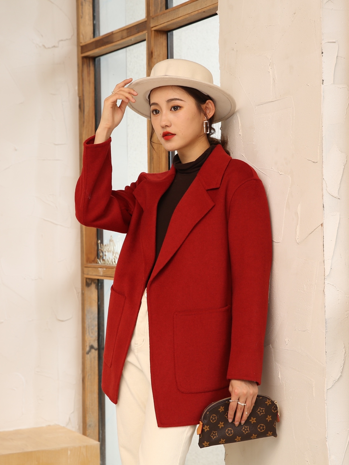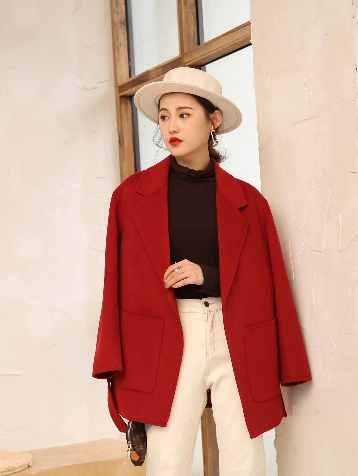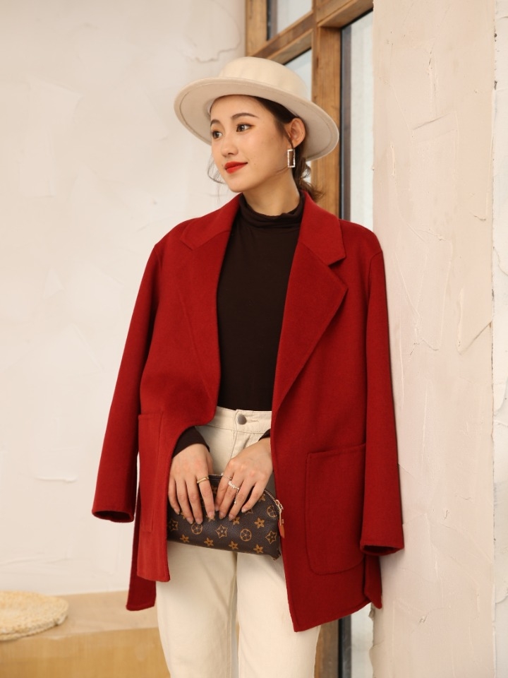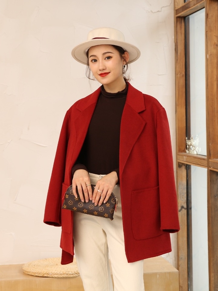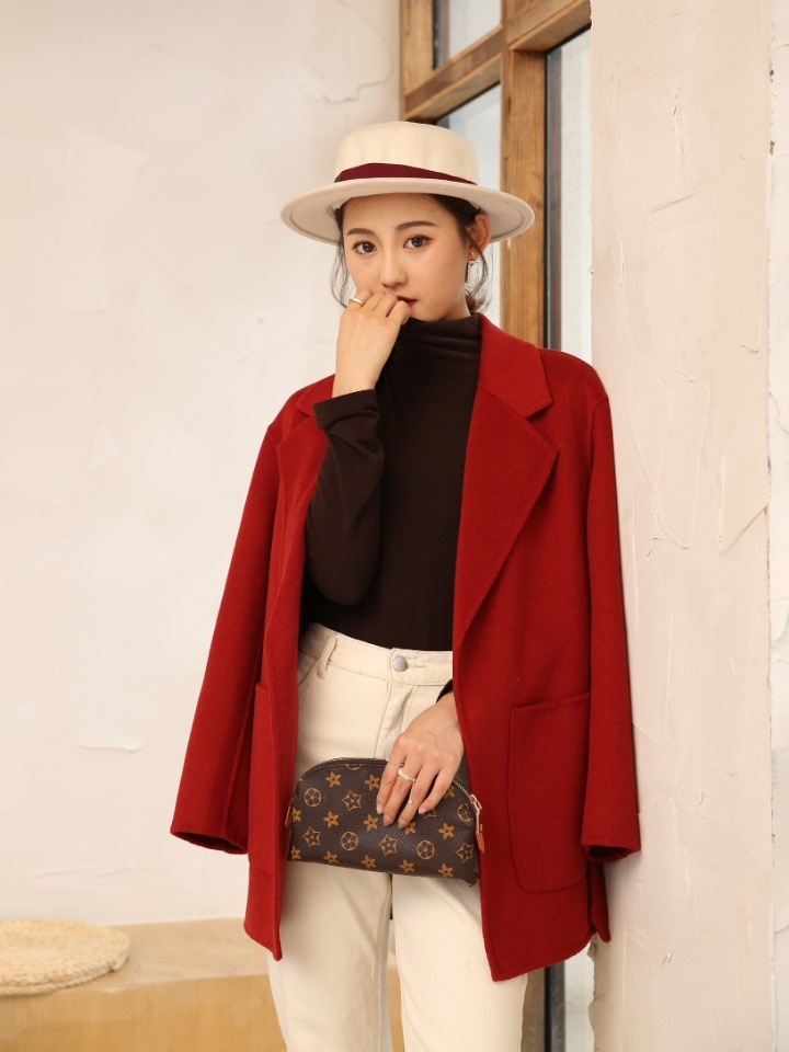 整件大衣两面都是采用精品澳毛面料,所以摸上去的时候手感是超级柔软细腻的,而且衣服的质感也是超级棒的,全部采用纯手工设计,大牌感十足,西装领的设计又更显简单大气!