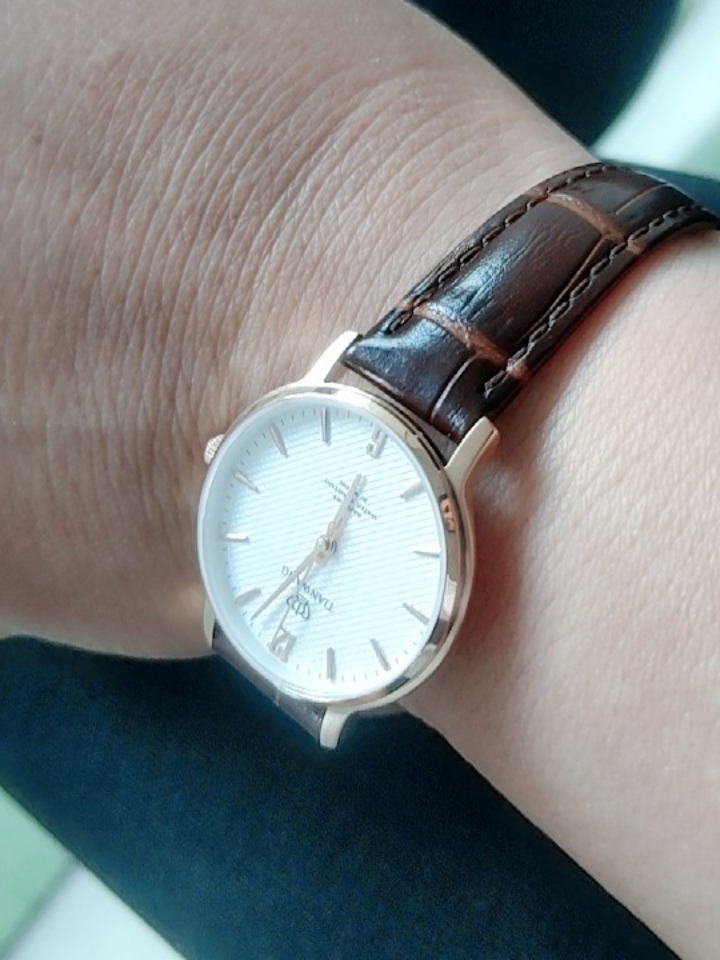 纤薄而轻美的表壳贴合手腕没有压力感,刻度的仪式感,记录每个精彩瞬间,静谧白与暖调棕搭配,还原本真的纯粹,搭配白色表盘,儒雅气质尽显。纤细双针提升视觉空间感,亲肤牛皮制成的表带,长时间佩戴舒适如初,简单大气,能很好的彰显品味。