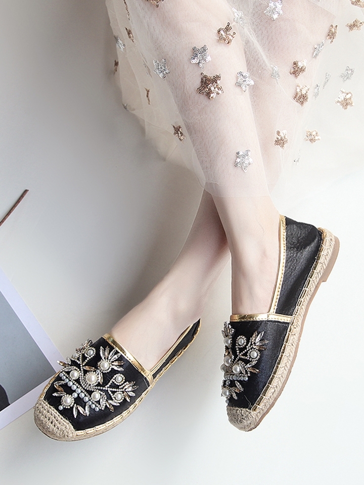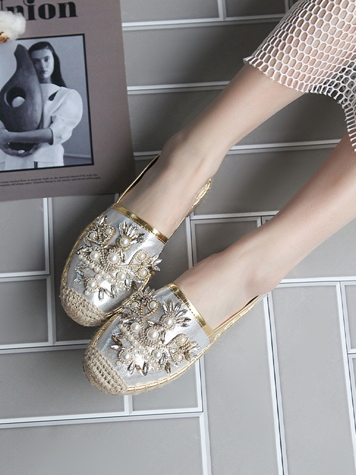 舒适休闲的平底渔夫鞋总是受人喜欢的一种款式,柔软的大底走到哪舒适到哪,水钻的点缀装饰,更显优雅美感,让人过目难忘的那种哦。
