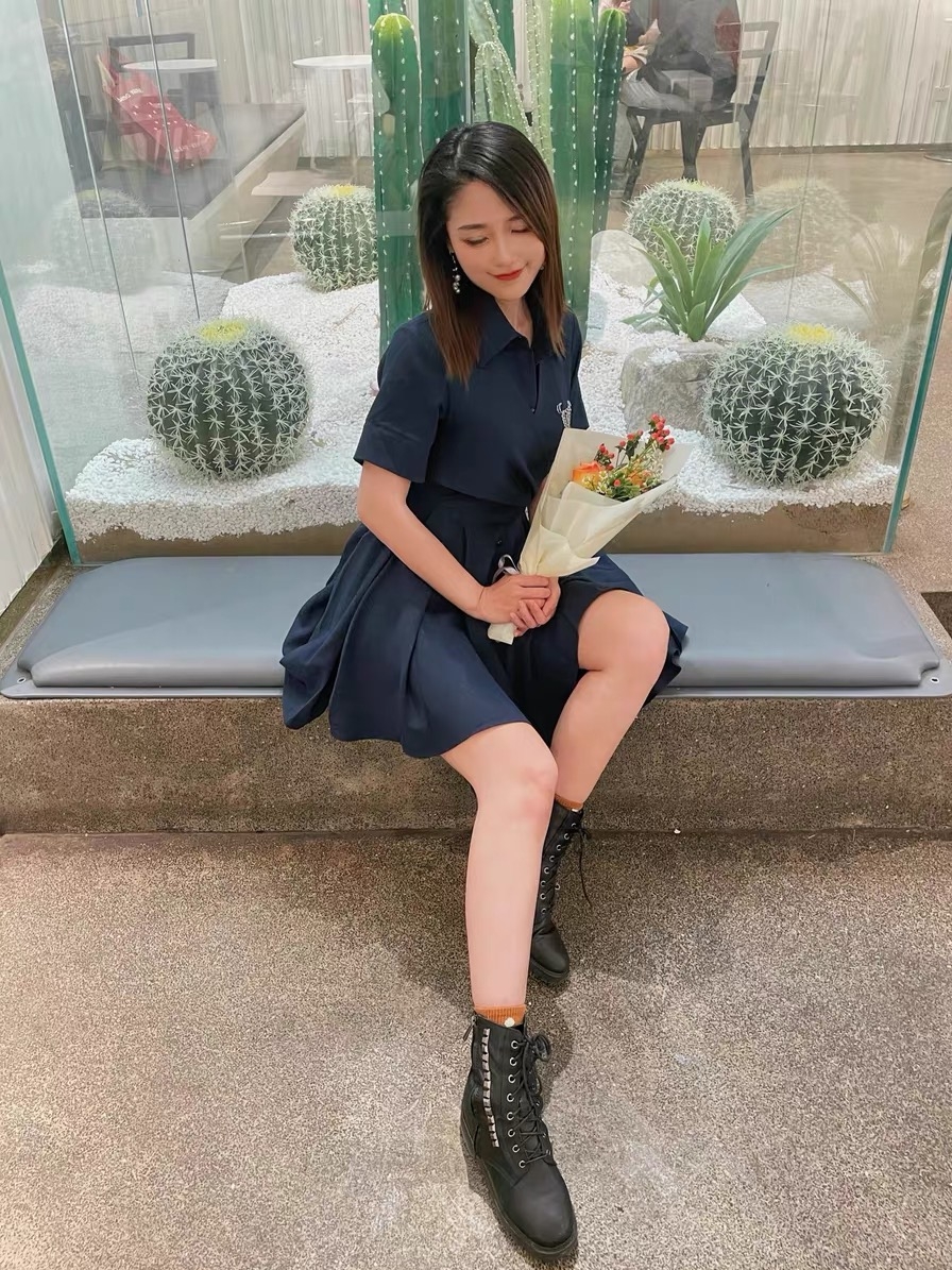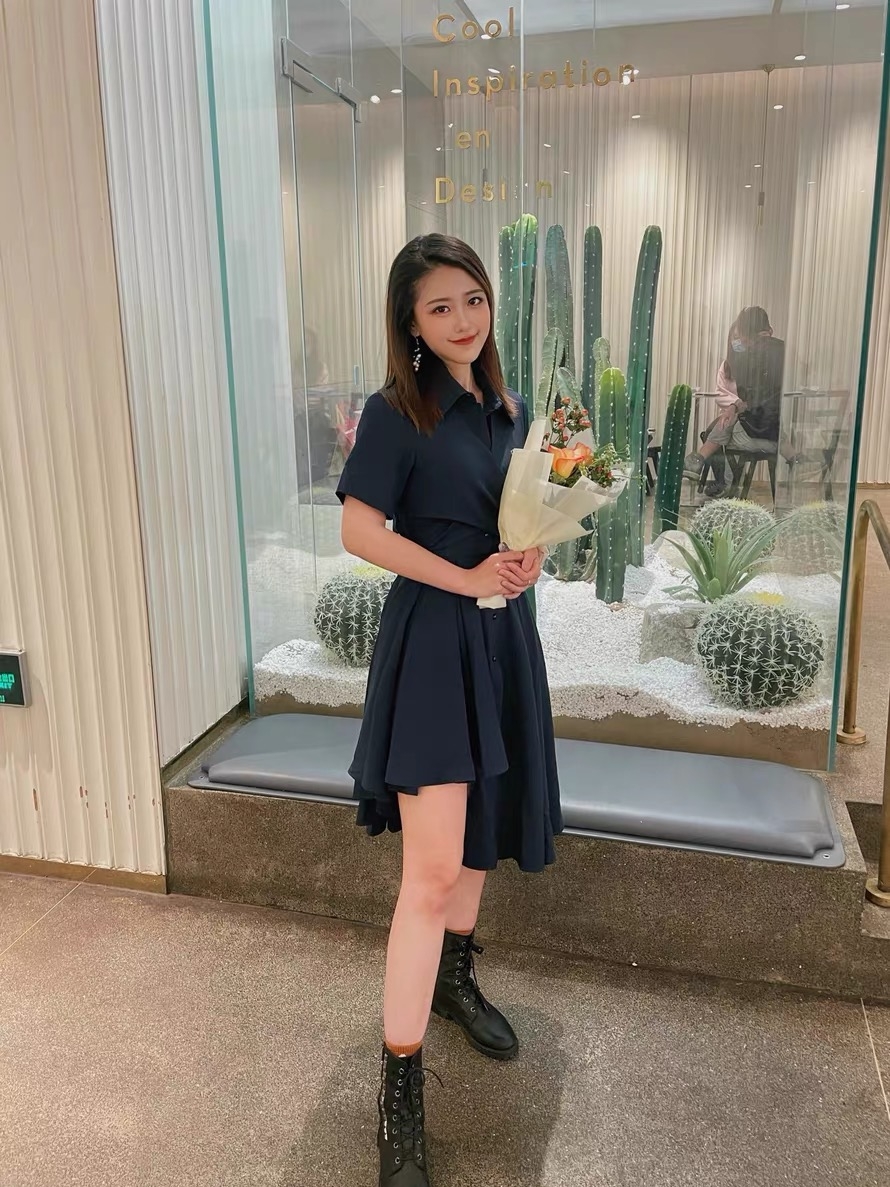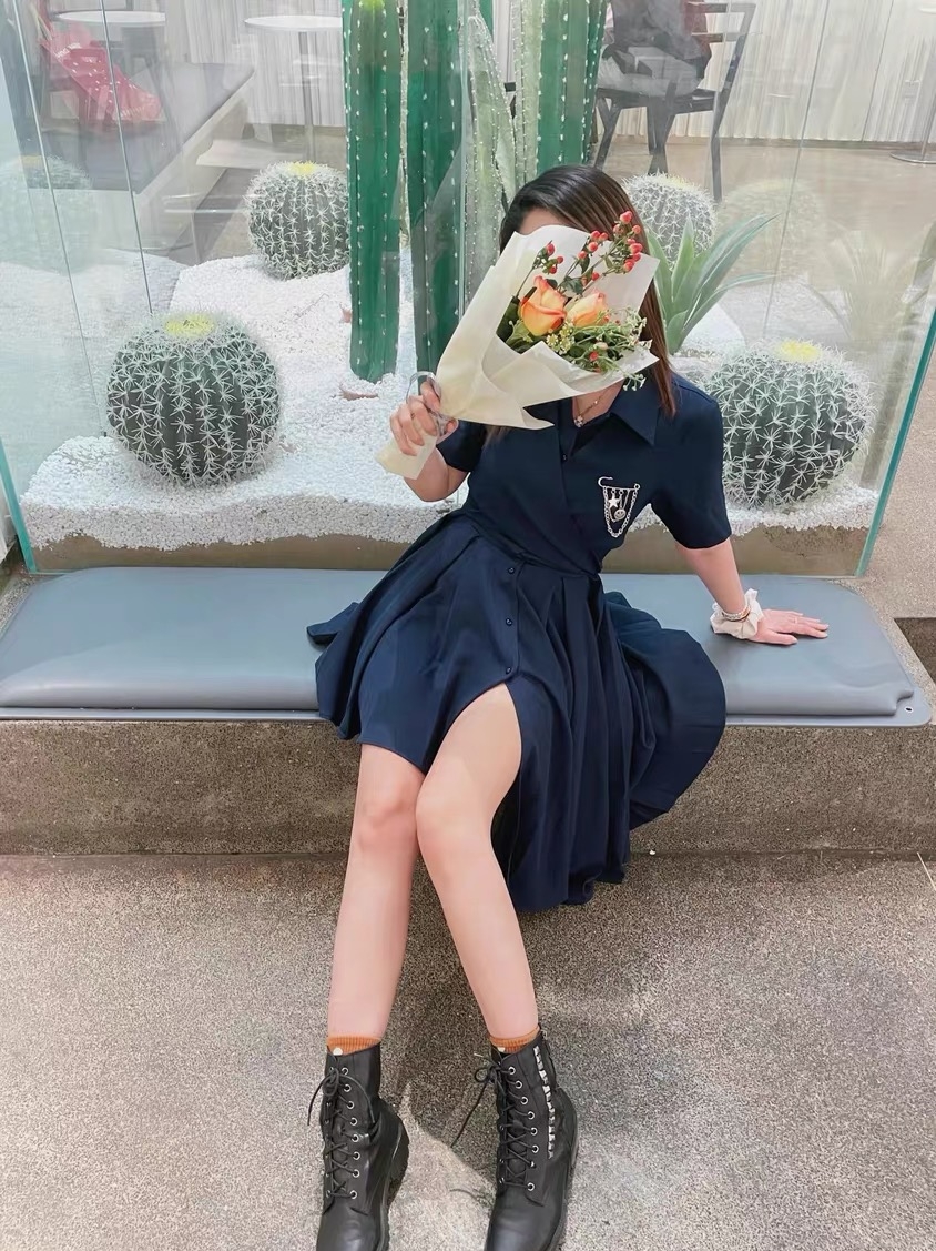 这款搭配立体修身的剪裁勾勒出玲珑曲线。不规则的下摆是最大的设计亮点,增添个性和柔美之余修饰修长的美腿。