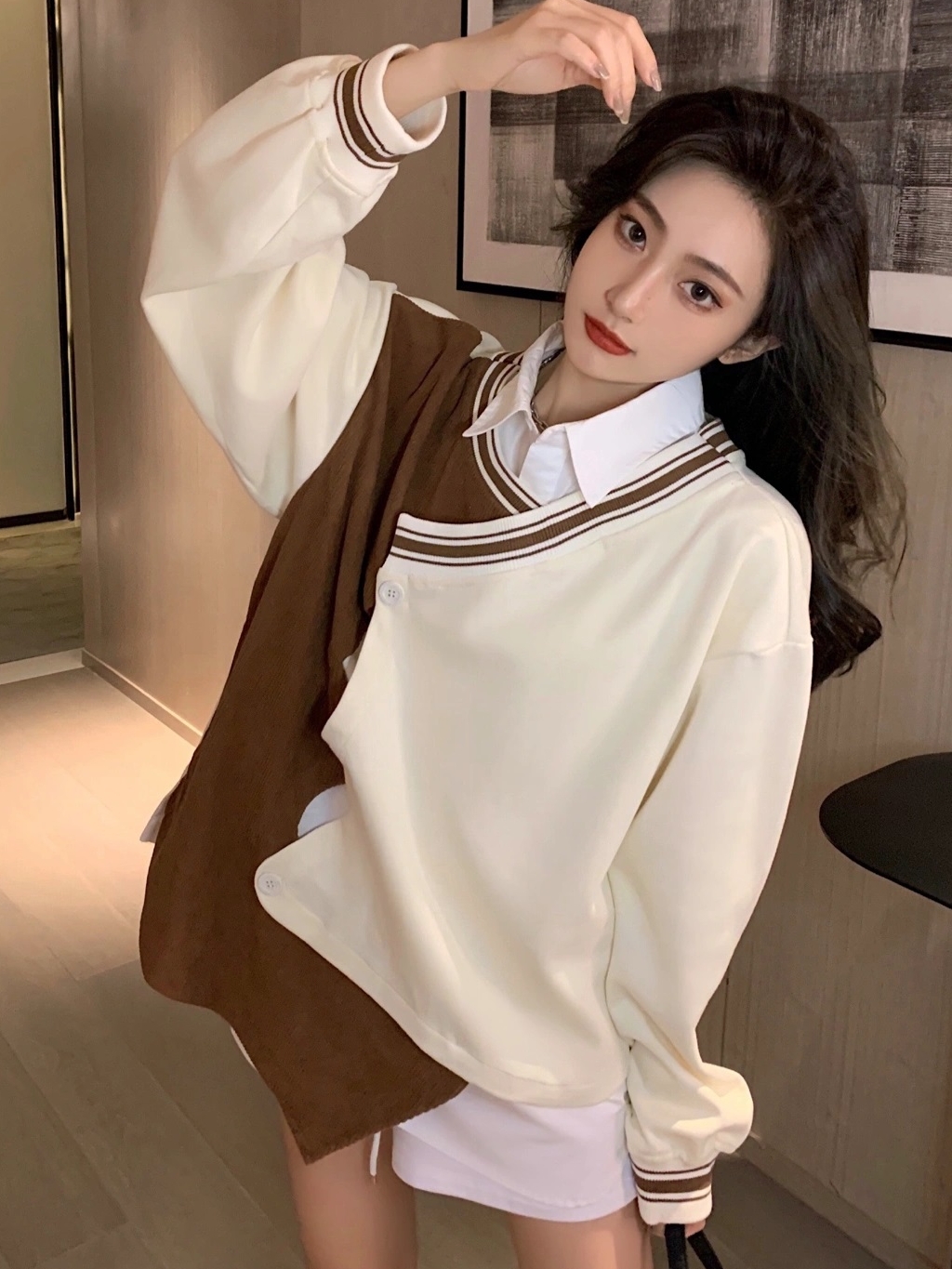 撞色艺术感拿捏了,这套简直不要太好看,整个色系就很高级,还是宽松慵懒版的,不是一般般好穿。