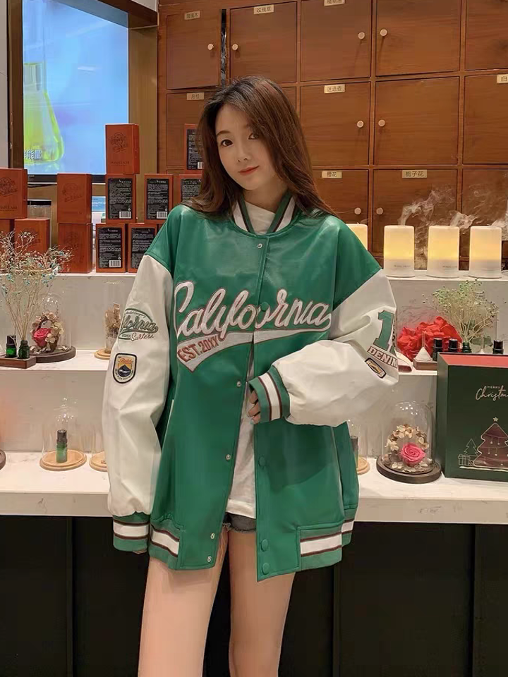 袖子是PU皮拼接的,衣身是呢料的哦,内衬涤纶面料,适合秋季穿着,版型比较宽松,请亲们根据衣长和袖长选择尺码哦~~男女同款的,可以搭配情侣装。