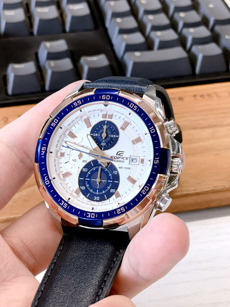 这款手表选择了矿物强化玻璃镜面,防磨耐刮。100M深度防水,日常佩戴无需担心。真皮表带加持,佩戴体验更好。