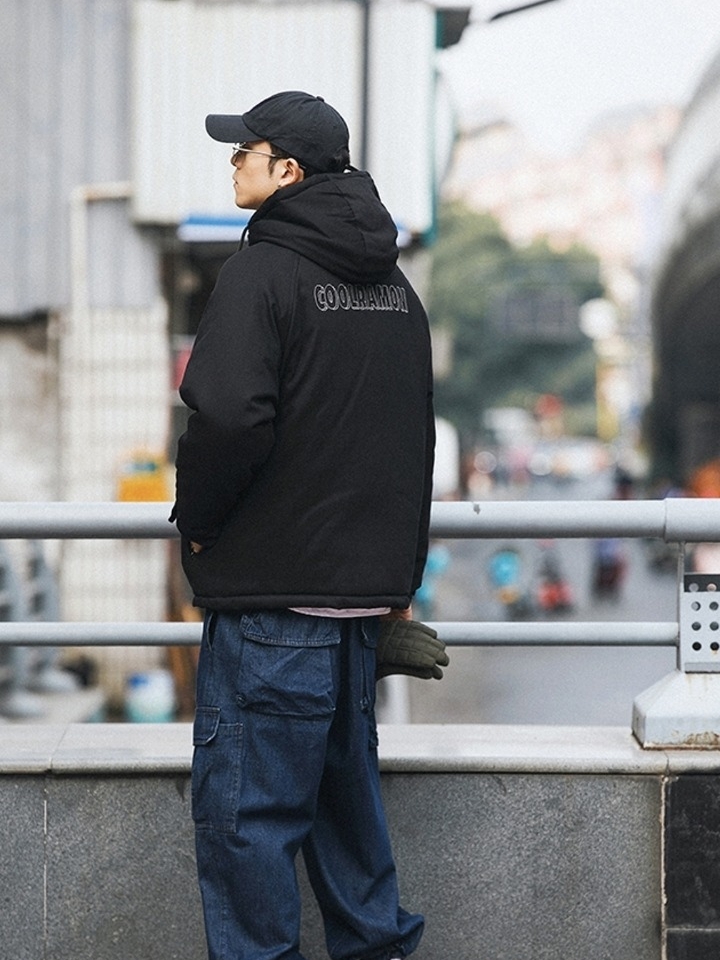 温暖贴心的连帽让看似臃肿的款式,变得更有时尚范,精致大气的拉链彰显品牌的魅力,更让你穿脱自如。而且很百搭哦。