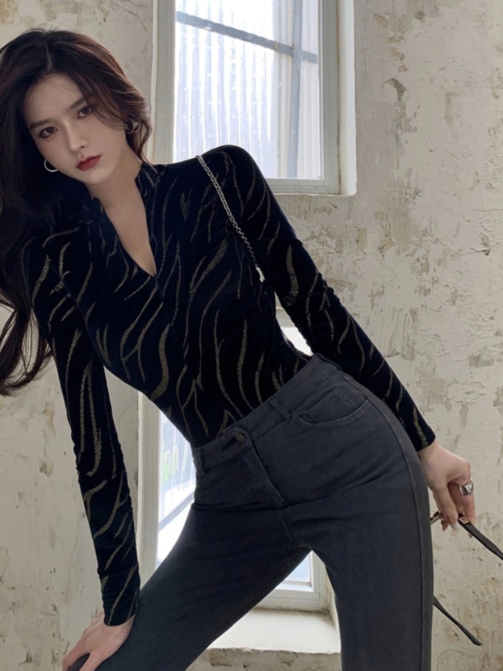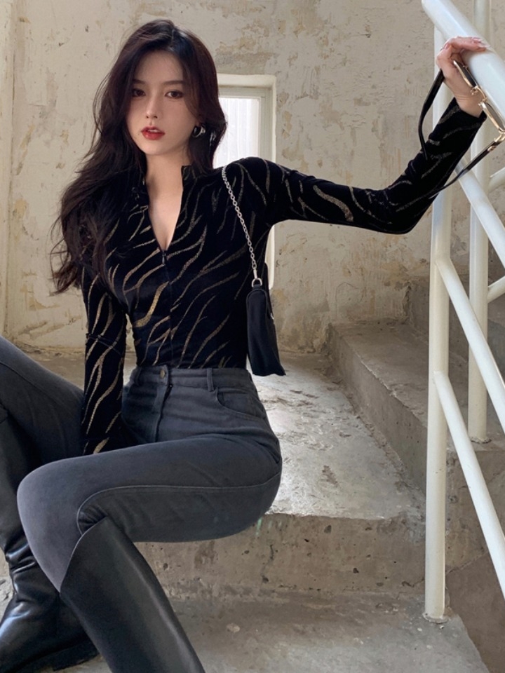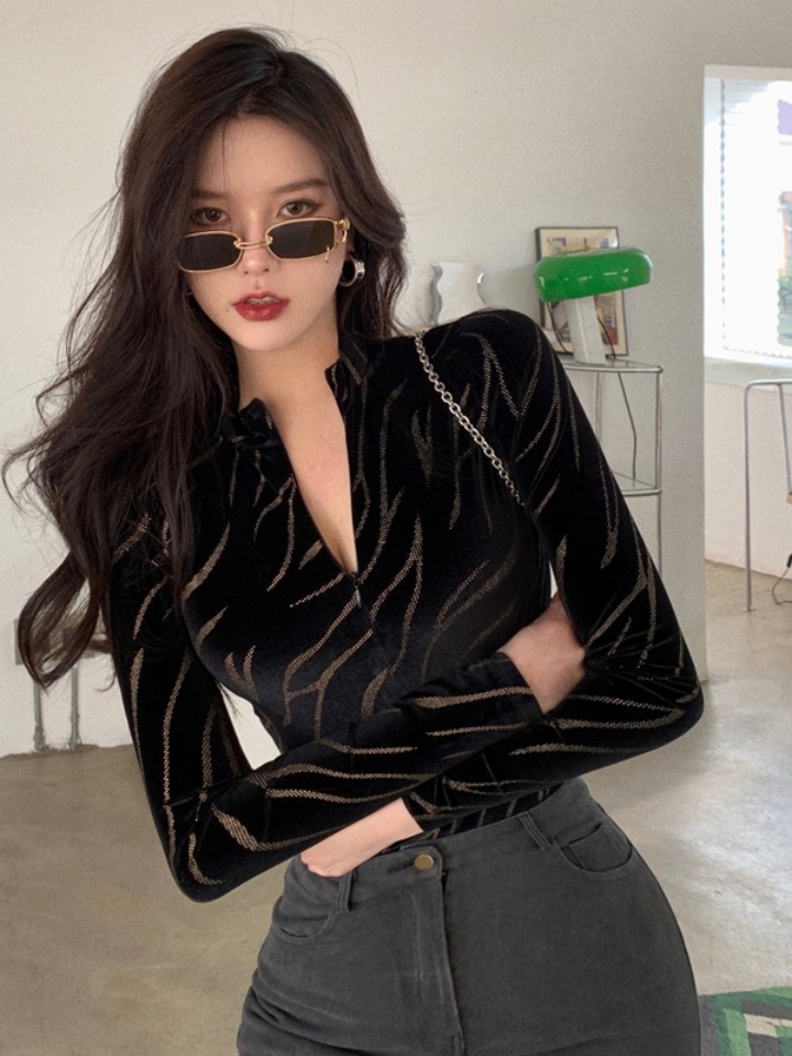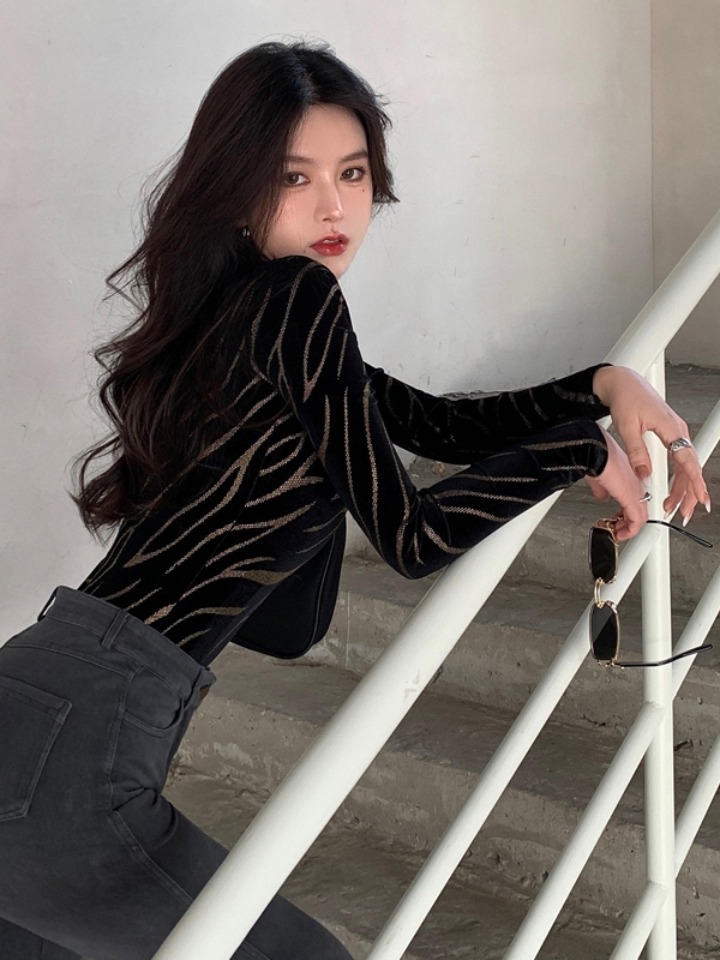 质感细腻的丝绒长袖上衣,细腻的光泽感,良好的垂坠性,都彰显时尚品味。气质满满的款式,可以满足大衣、外套多种搭配需求。