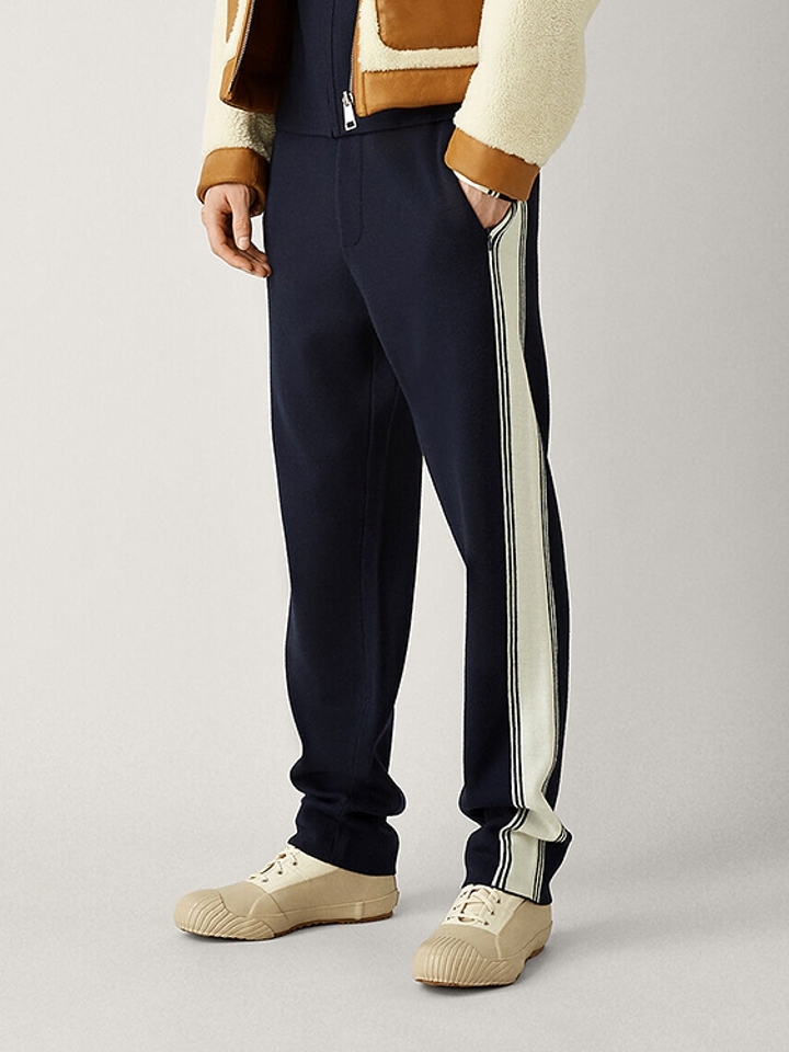 纯黑色的小脚修身版型运动裤,柔软舒适的面料很保暖,拉链口袋周围的拼接制作很精致。低腰的款式很修身,松紧腰上的抽绳设计是潮流的字母织带,个性而且美观。