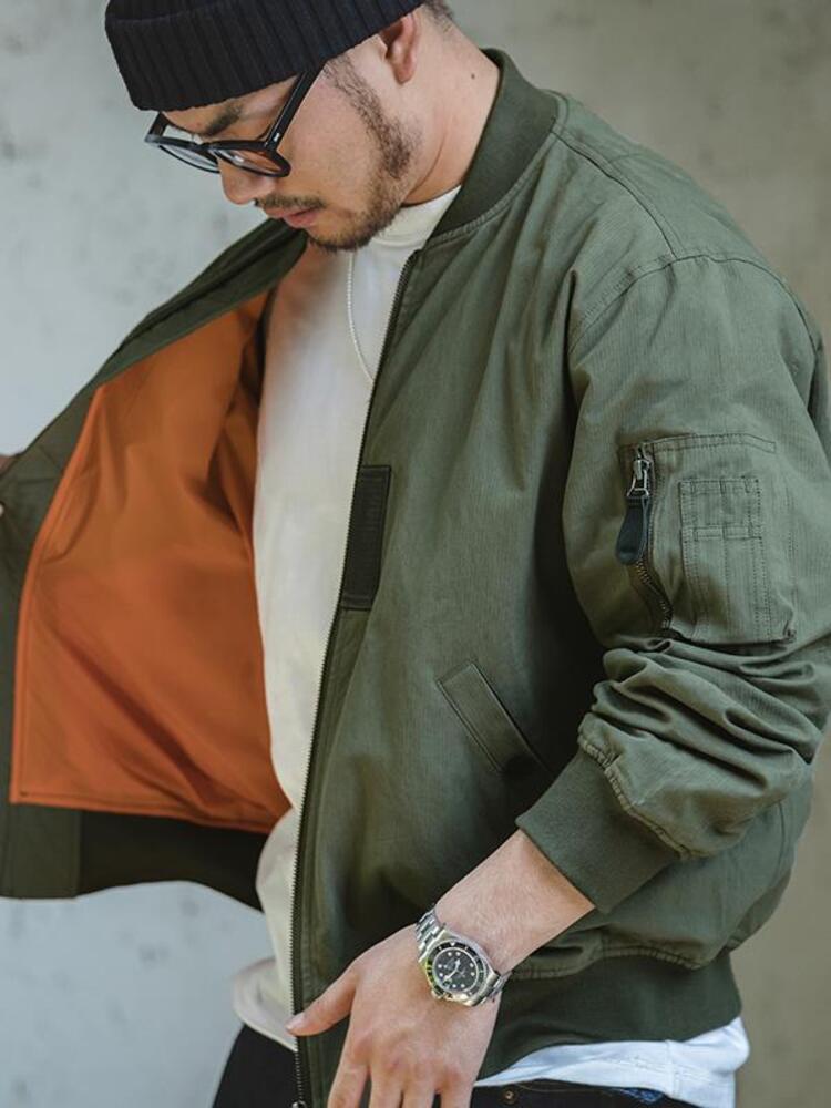 在穿搭上小编建议里衬一件简单的T恤即可,主要突出的是夹克的魅力。下身的话可以尝试一下一条深色系但是宽松版型的牛仔裤,个性十足。最后配上一双吸睛的黄色帆布高帮,尽显帅气的味道。出门时配上一款盆帽,有着太多的艺术气息了。
