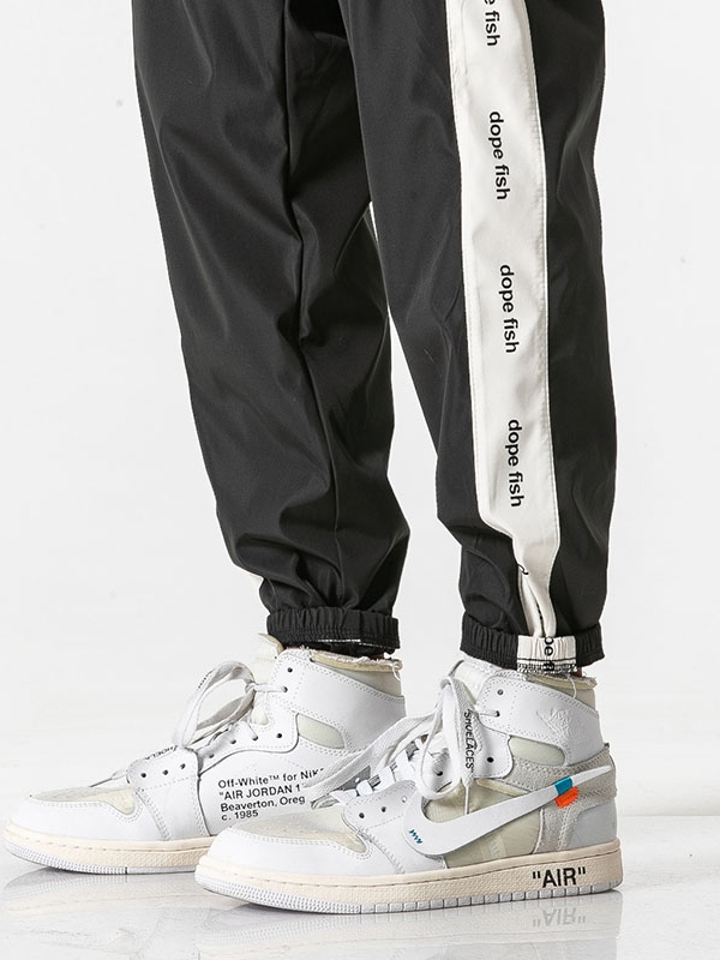 一侧裤身拼接撞色条纹,造型独特且个性,打破了整体纯黑的单一乏味,使其更具设计感与时尚感,分外率性出彩。