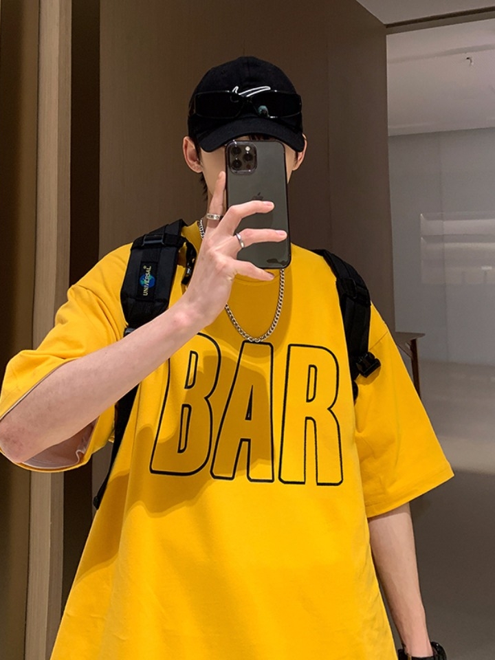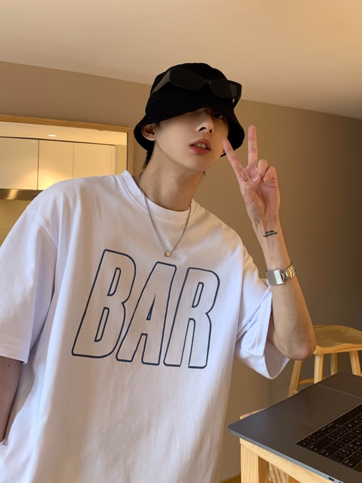 这款t恤是简约的风格,宽松的版型,时尚百搭,胸前的字母印花,很有个性,搭配牛仔裤或者短裤都很好看。