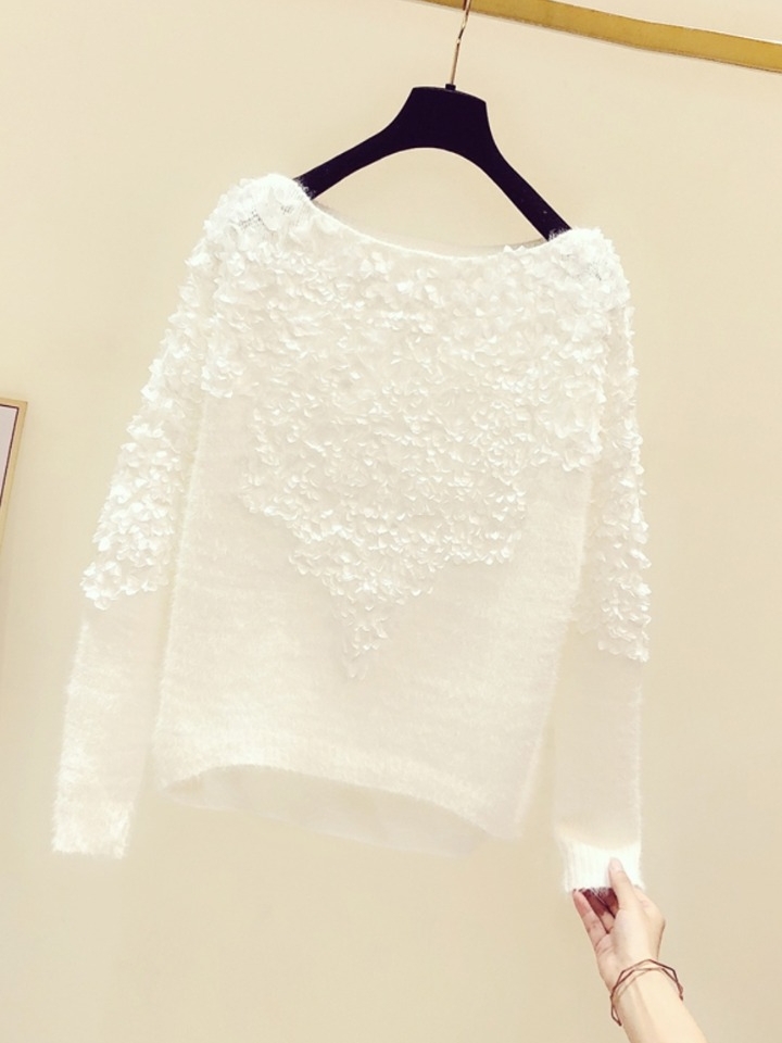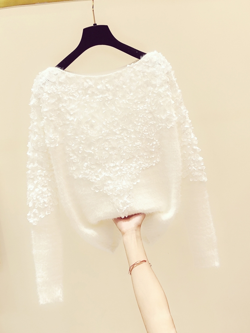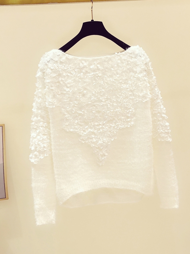 第一次见到这款毛衣,我简直就是爱了,它纯洁的白色衣身,搭配立体的同色系花朵,非常的优雅精致,有一种仙气飘飘的感觉,超级仙。