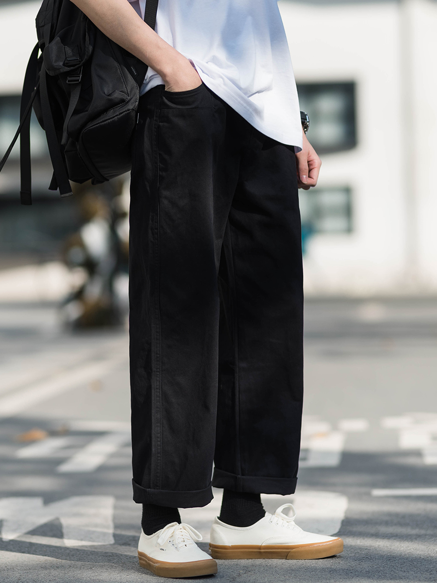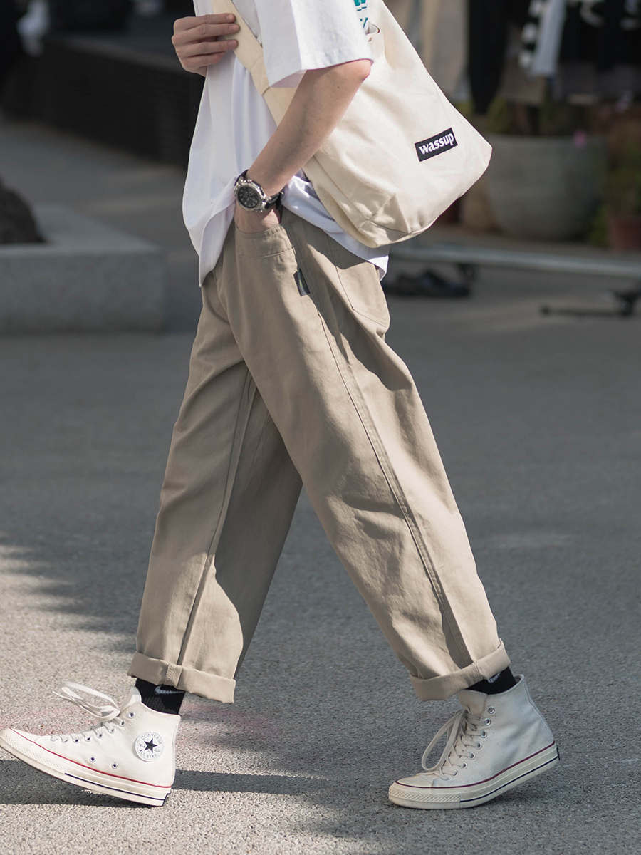 上身舒适的不要不要的阔腿八分裤,宽松的阔腿版型不仅穿着舒适,还带有港风气息,八九分的裤长随意范儿爆棚。