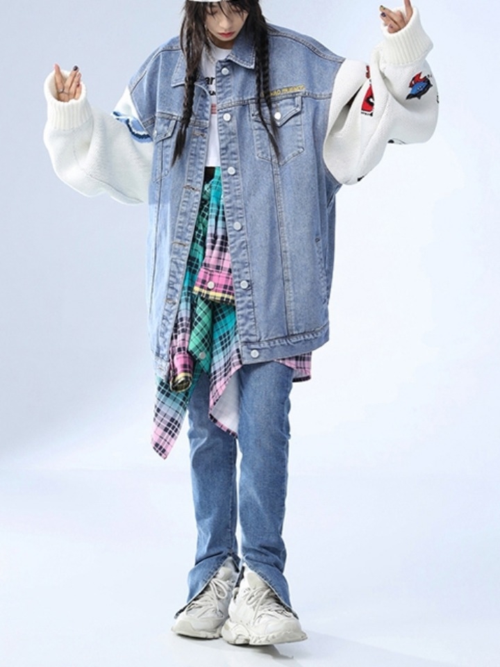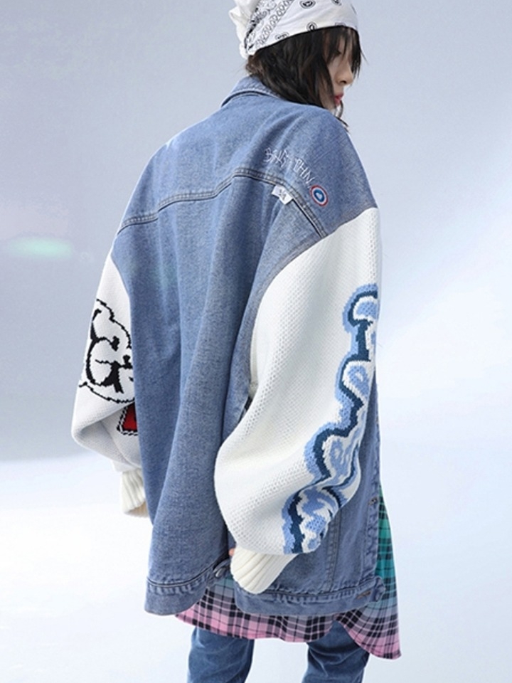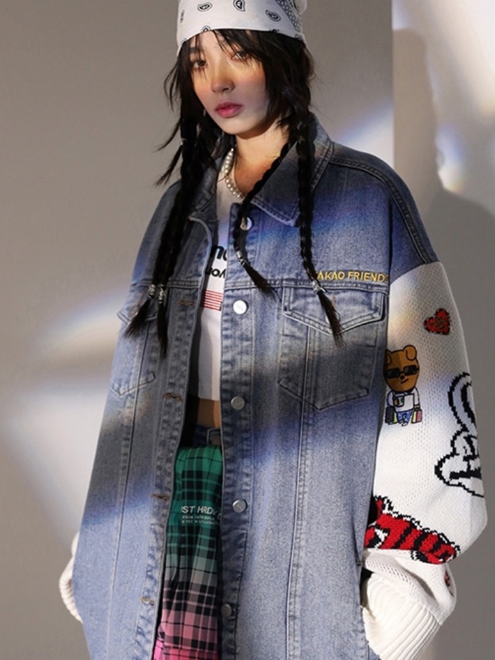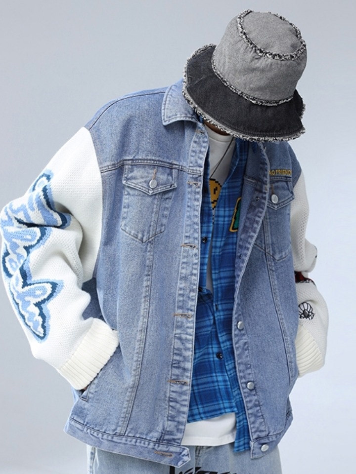 充满学院风的一款撞色夹克,夹克的袖子是牛仔拼接,异材质的拼接,让夹克的质感以及设计感更棒,简约不失格调。上身线条感更利落;面料是棉混纺牛仔布,穿着舒适。