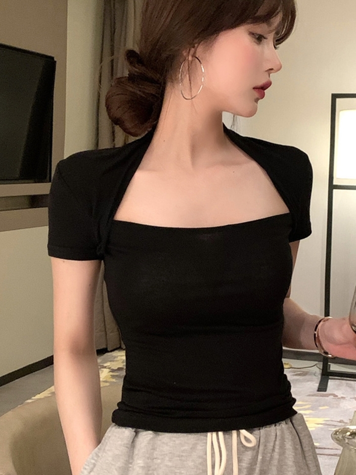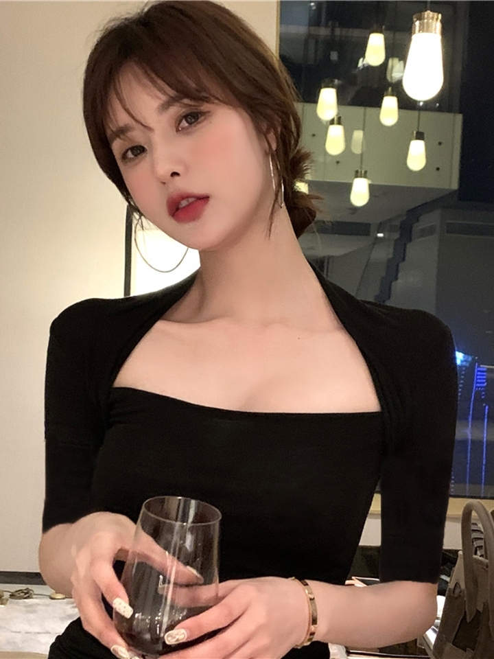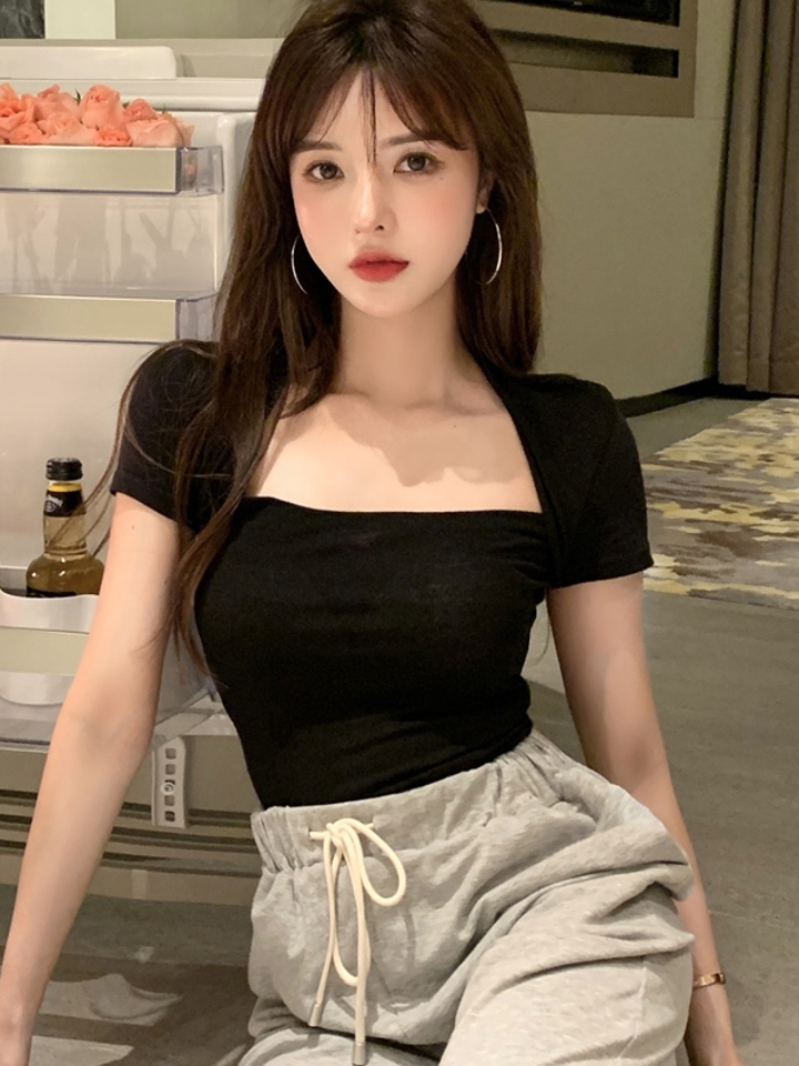 优雅的小方领塑造淑女随心搭配的风范,修身的版型让你穿起来凸显苗条的身材,采用纯棉面料,穿起来更加的舒适,无论长裤,黑白色短款,都很好搭配。