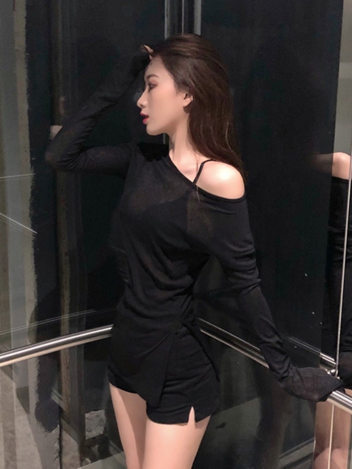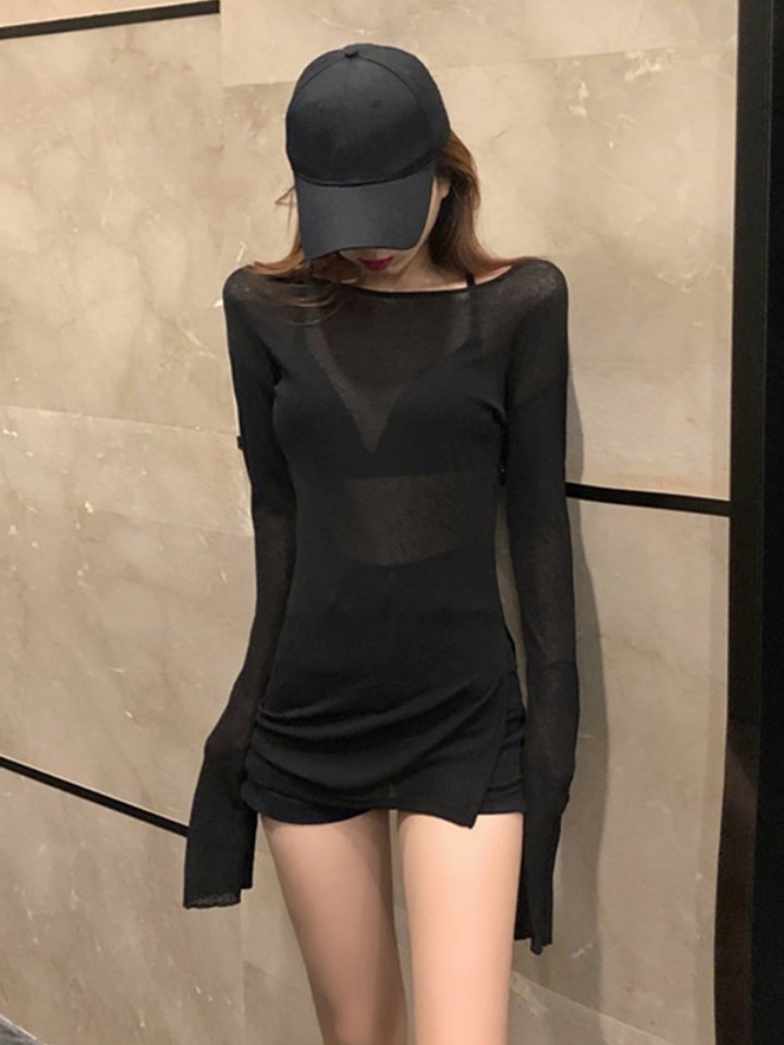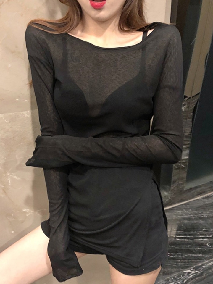 这款打底衫采用的是优质的针织面料打造,柔软细腻,具有很好的亲肤性,而且是微微透视的质感,能够为整体装扮增添几分小性感呢~