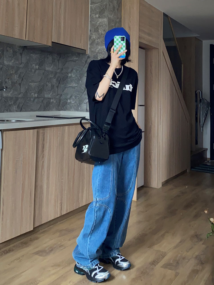 这款牛仔裤的设计很有特色,高腰的版型,很好的修饰了身材比例,显瘦效果很棒,搭配一件T恤,就能轻松穿出时尚感。