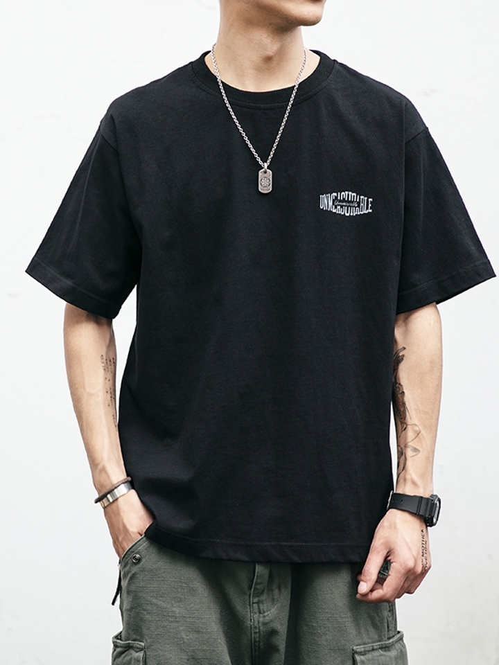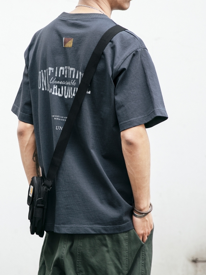 纯色的衣身与五彩的印花相得益彰,此款T恤胸前与后背的印花设计潮感十足,选用优质面料制作,保证这件基础款的圆领短袖T恤的品质。
