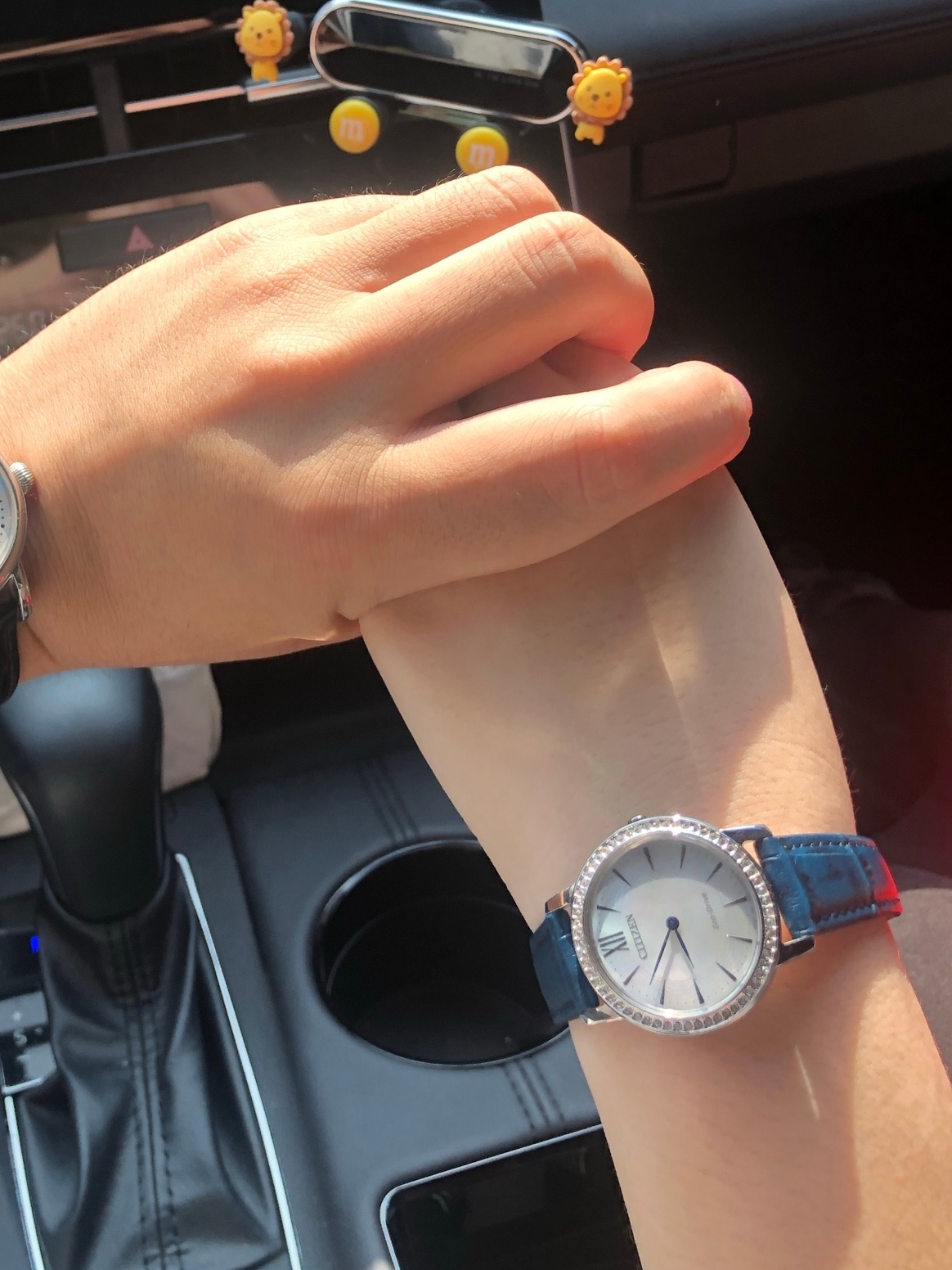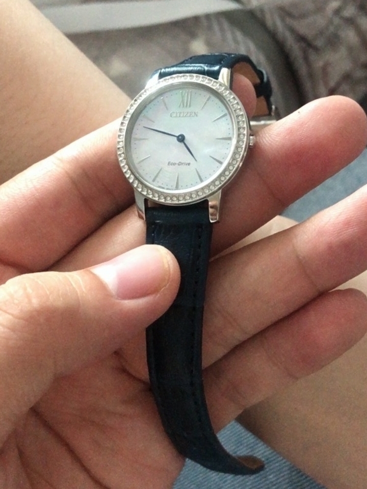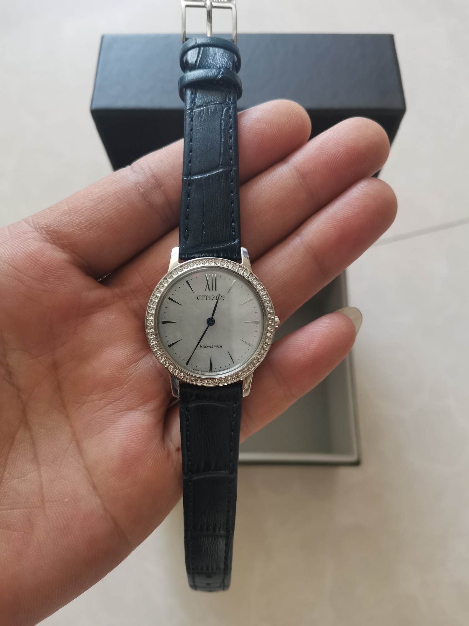 这是一款来自西铁城的女士腕表,表盘镶嵌了一圈天然真钻,外加五彩斑斓的珍珠贝母表盘,搭配蓝色表带,奢华大气名。彰显质感与高贵。