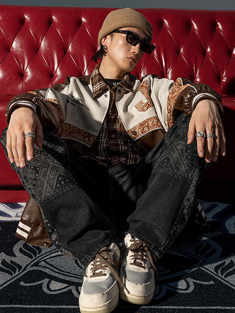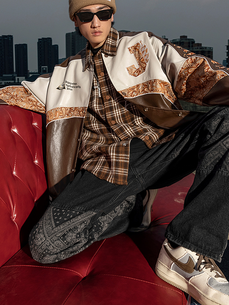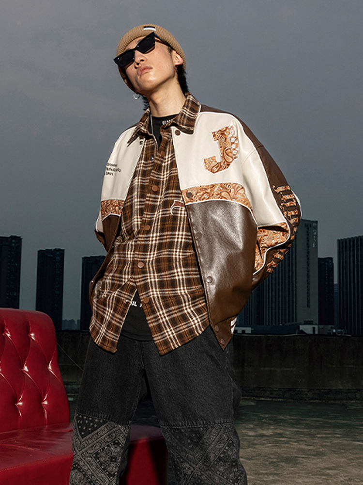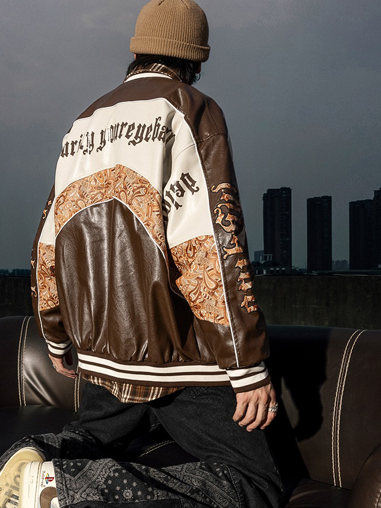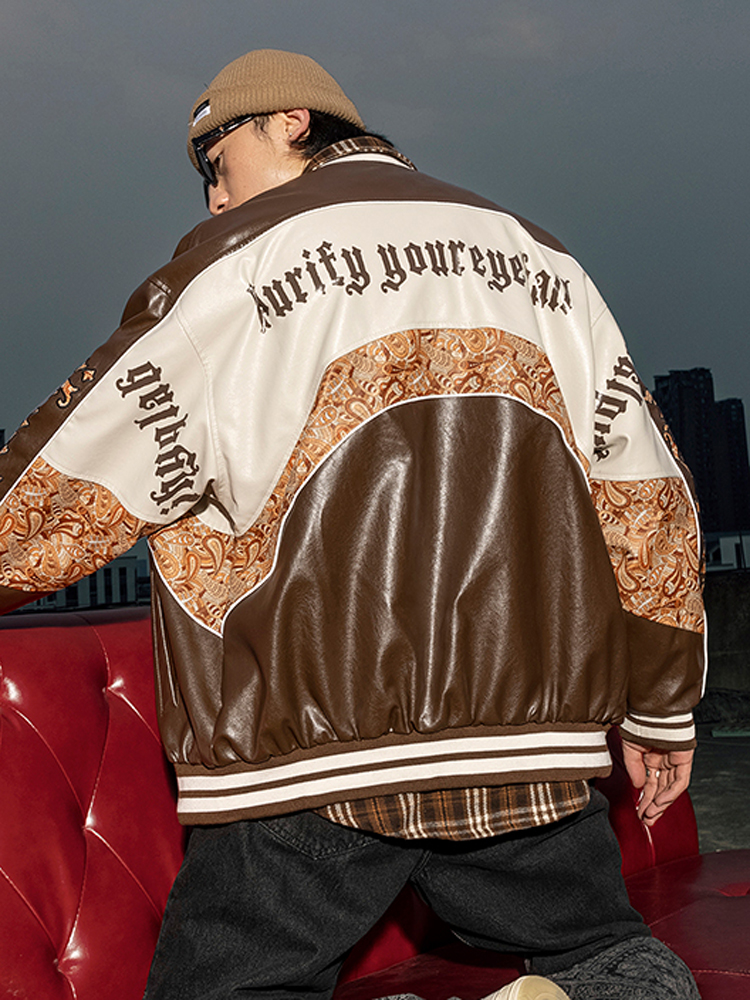 这款皮衣选用了pu材料,这种皮质材料的质感硬挺有型,使得穿着更显精神帅气。后背上的个性拼接设计打破了pu皮革给人的硬朗气息,更显的潮酷有型,穿着帅气洒脱。撞色的印花拼接工艺带来了强烈的视觉冲击效果,时尚潮流,充满了质感。