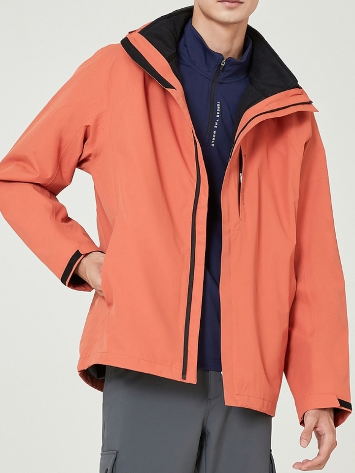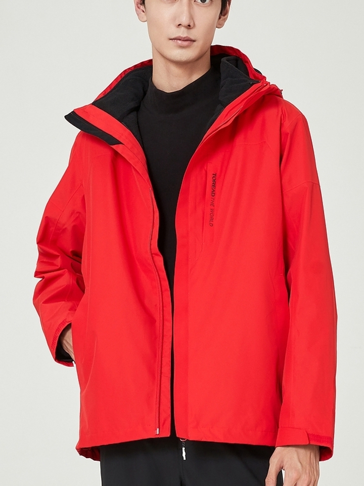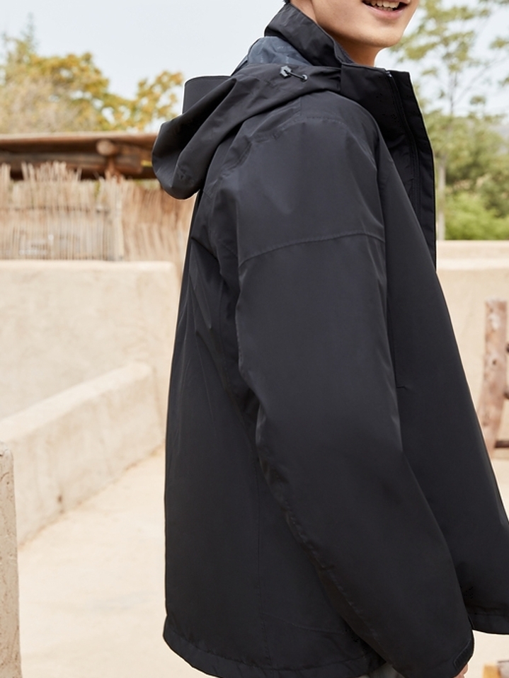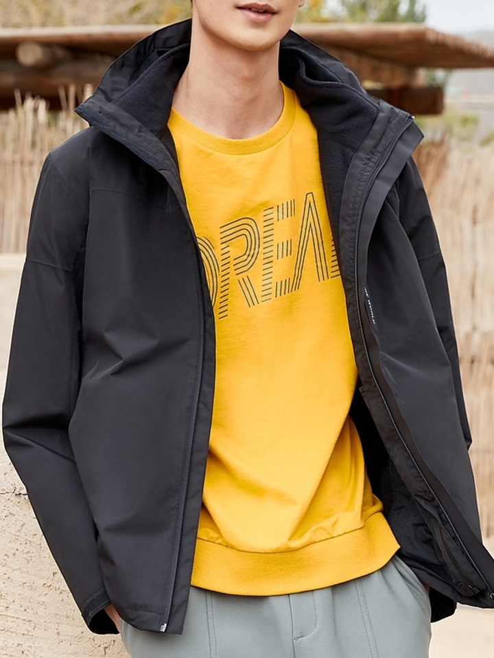 探路者秋冬款男式防风冲锋衣,套绒设计,保暖透湿。防水透气科技,高能防水透气,防风面料及入微细节处理,轻松开启远足之旅,耐磨性极佳,结实强韧,能够有效减轻身体与背包带来的磨擦,给你户外最佳体验。