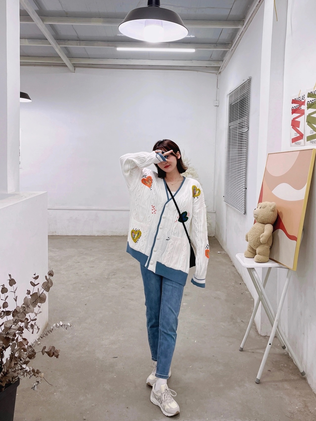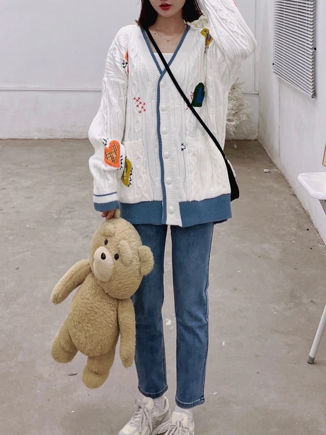 件毛衣开衫配色和图案都好可爱,而且比较厚很保暖,北方的小姐姐们都可以穿。