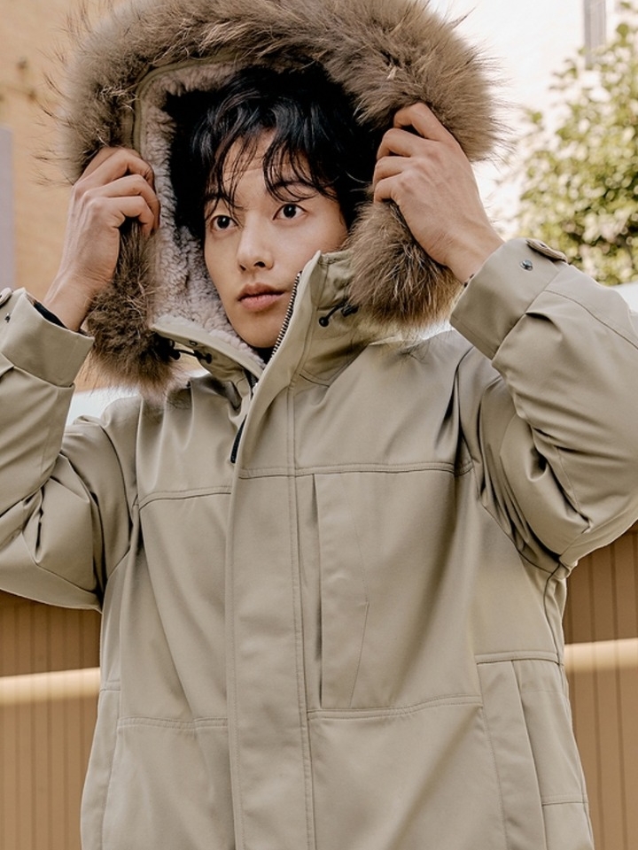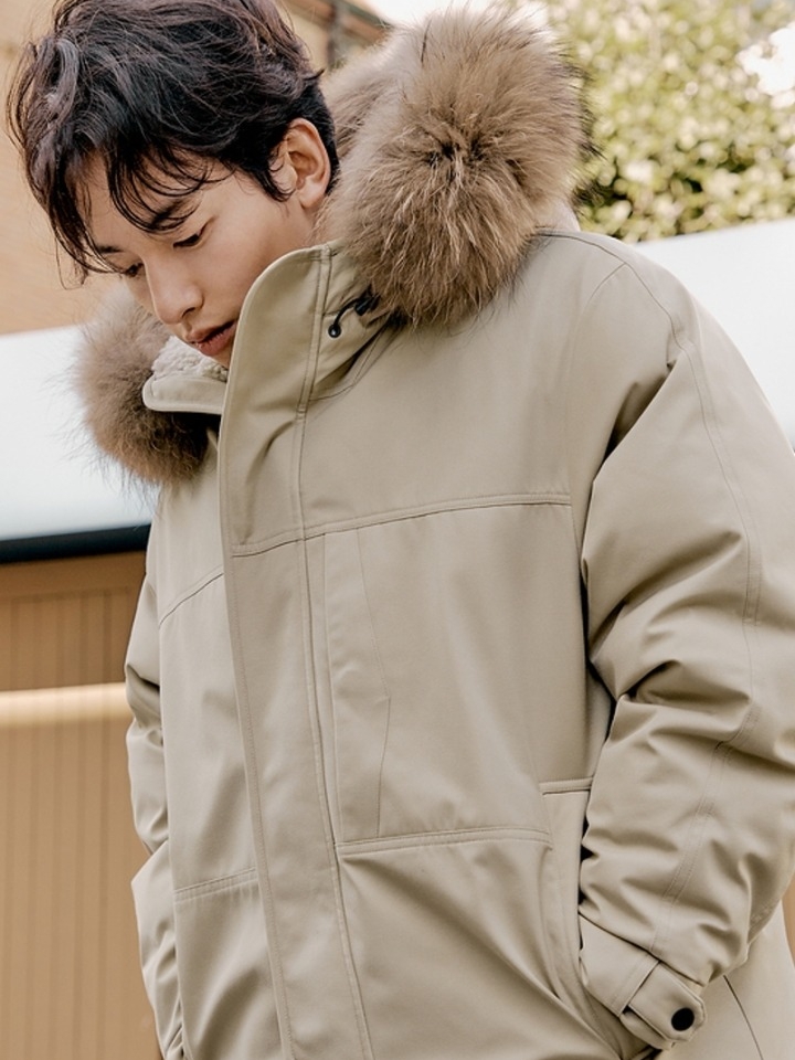 帅气又保暖的一款连帽羽绒服,正面的拉链为双层设计,衬托整体版型更显时尚,同时非常保暖。内部优质羽绒填充,自然蓬松,柔软舒适,冬日穿着使你远离严寒。精致的车线尽显上乘品质。