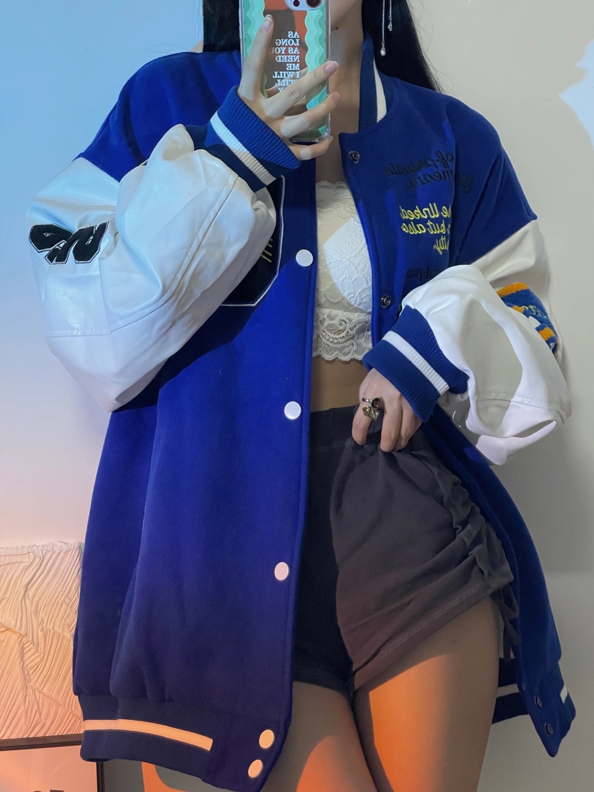 这个秋天又主打了棒球服,二者完美结合,可太好看了。