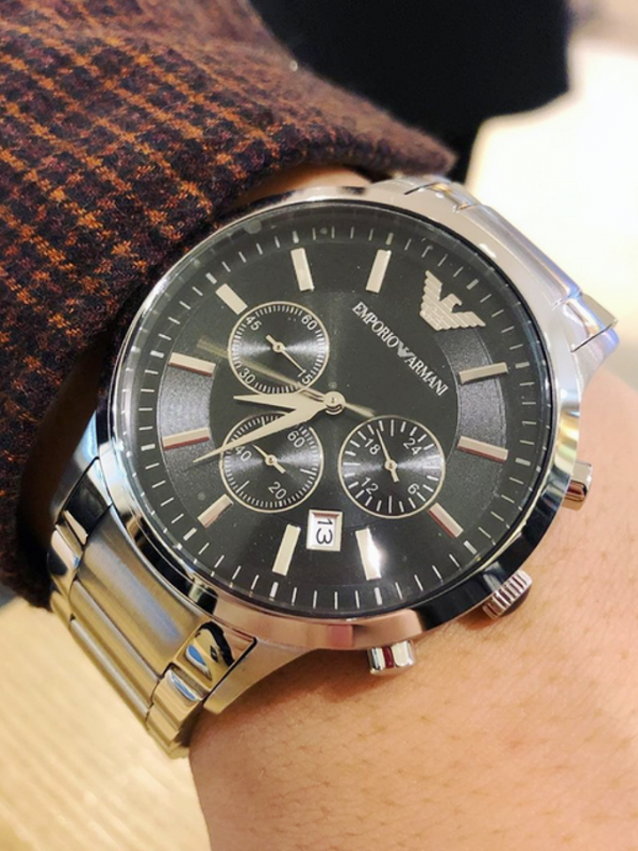 阿玛尼是意大利时装界顶级品牌,就像包里的LV,打火机的都彭一样。都是奢侈品。此腕表采用简约的对称双眼表盘设计,12点老鹰LOGO,时尚,彰显男士沉稳与大气。