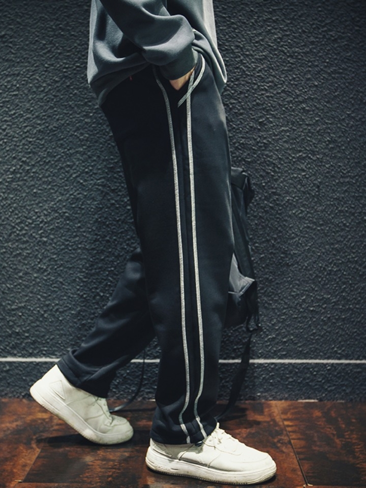 将时尚运动版型与流畅大气的宽松直筒设计结合,穿着轻松透气,舒适度极高,搭配简约抽绳松紧腰,便捷实用,新潮美观。