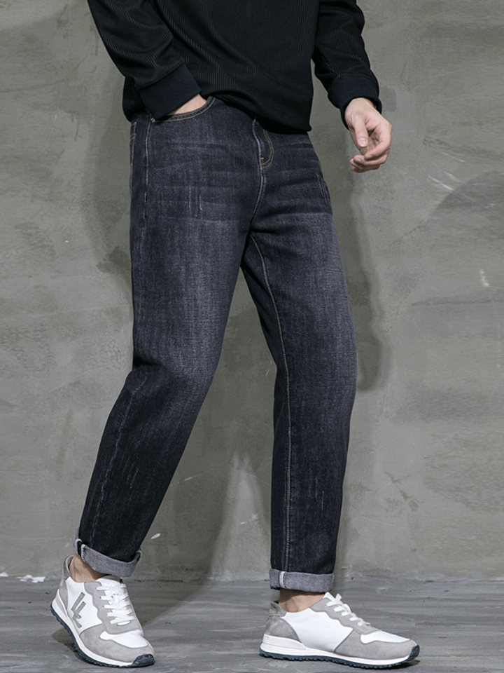 非常松垮的造型设计将酷帅感与洒脱感完美展现出来。一款极具复古摩登气场的牛仔裤造型,故意选择做旧水洗的牛仔面料。