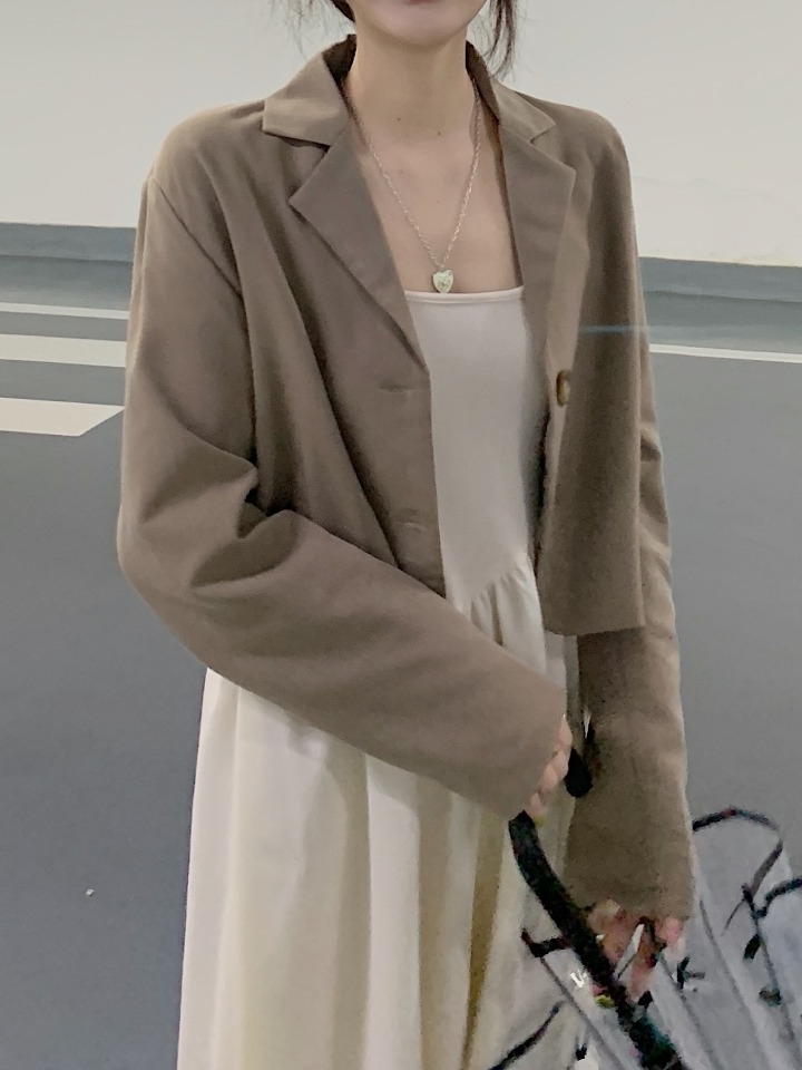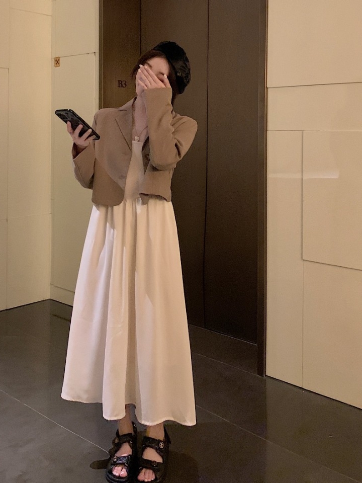 青春活力,充满阳光,时尚潮流的两件套休闲套装,时尚经典的纯色西装,靓丽甜美的中长款吊带裙,让整件套装顿时活力四射。