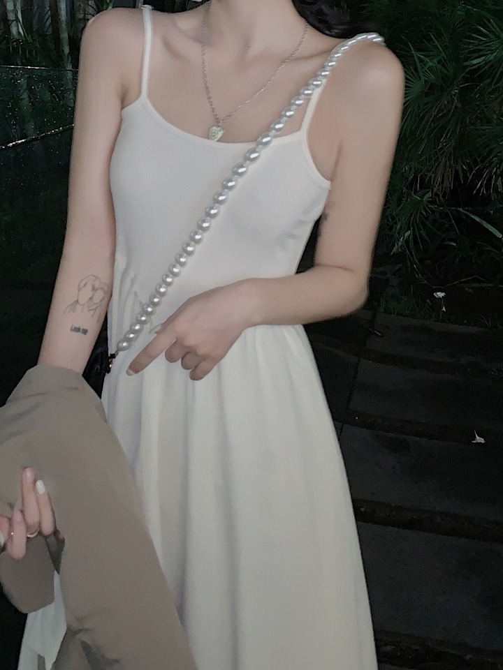 性感的吊带设计又做了露肩的效果很好的烘托出身材的线条来,整体做了很婉约的修身效果,塑造一份简约优雅的名媛范,女人味尽显,随意搭配凸显娴静内敛的淑女气质。