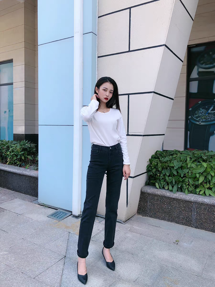 开始只是看到这件牛仔裤的版型 特别好 穿着很包 但是不会不舒服 有弹性的牛仔面料 颜色较深非常适合冬天搭配哦。