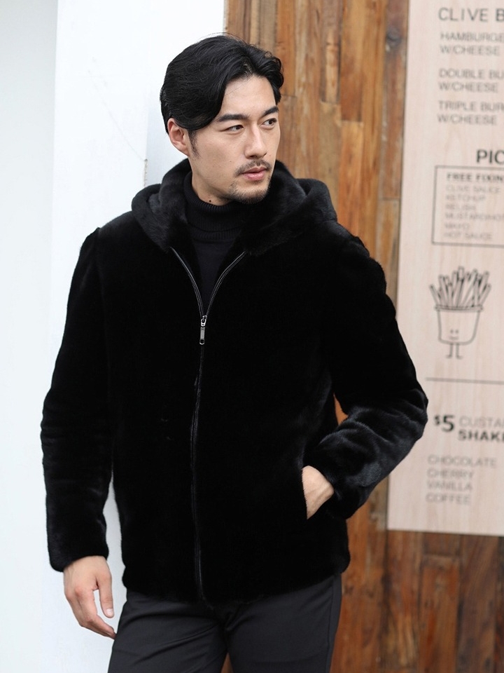 运用优质的水貂材质整皮制作,毛质顺滑,光泽十足,极具质感;加入了休闲连帽设计,丰富了衣身的视觉效果。怎么搭配都完美。