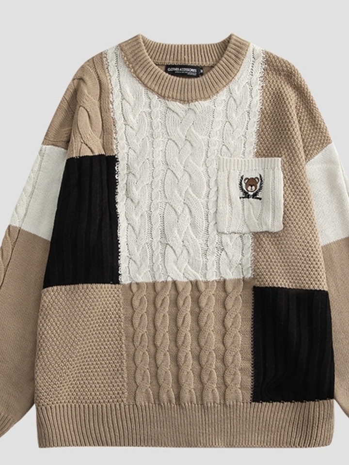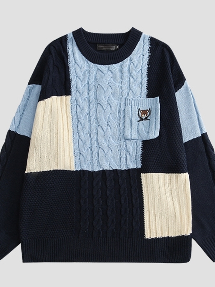 很学院风的一款针织衫,经典圆领款式,微宽松版型,舒适不挑人。衣身采用时尚拼色设计,随意搭配都很好看。