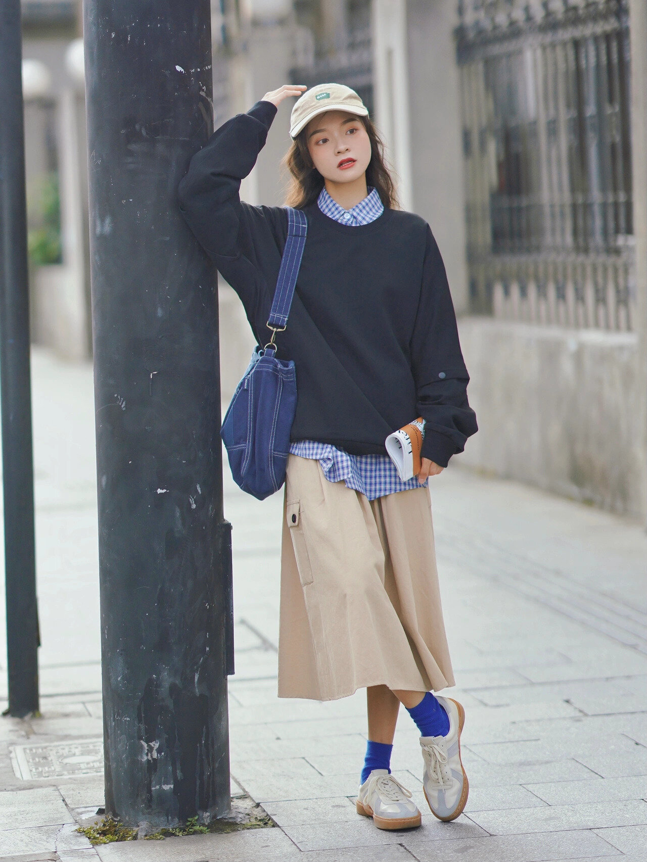 简约的高腰设计,搭配上修身的版型,上身显瘦又显高。