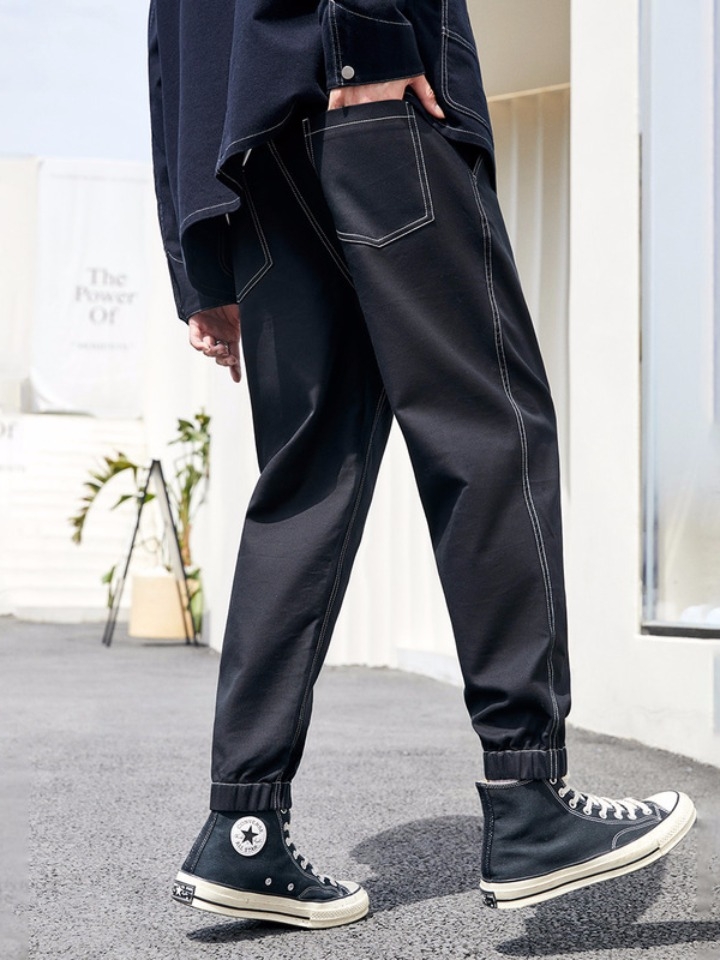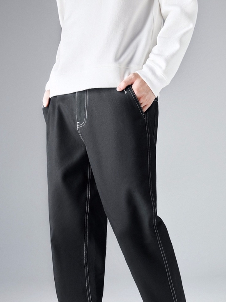 休闲裤强调个性、拒绝沉闷的设计理念,设计中也不失高级时尚的元素。不管是面料还是设计调性,以快时尚为目标,不断的推陈出新,无不引领潮流广受都市潮流男士追捧。