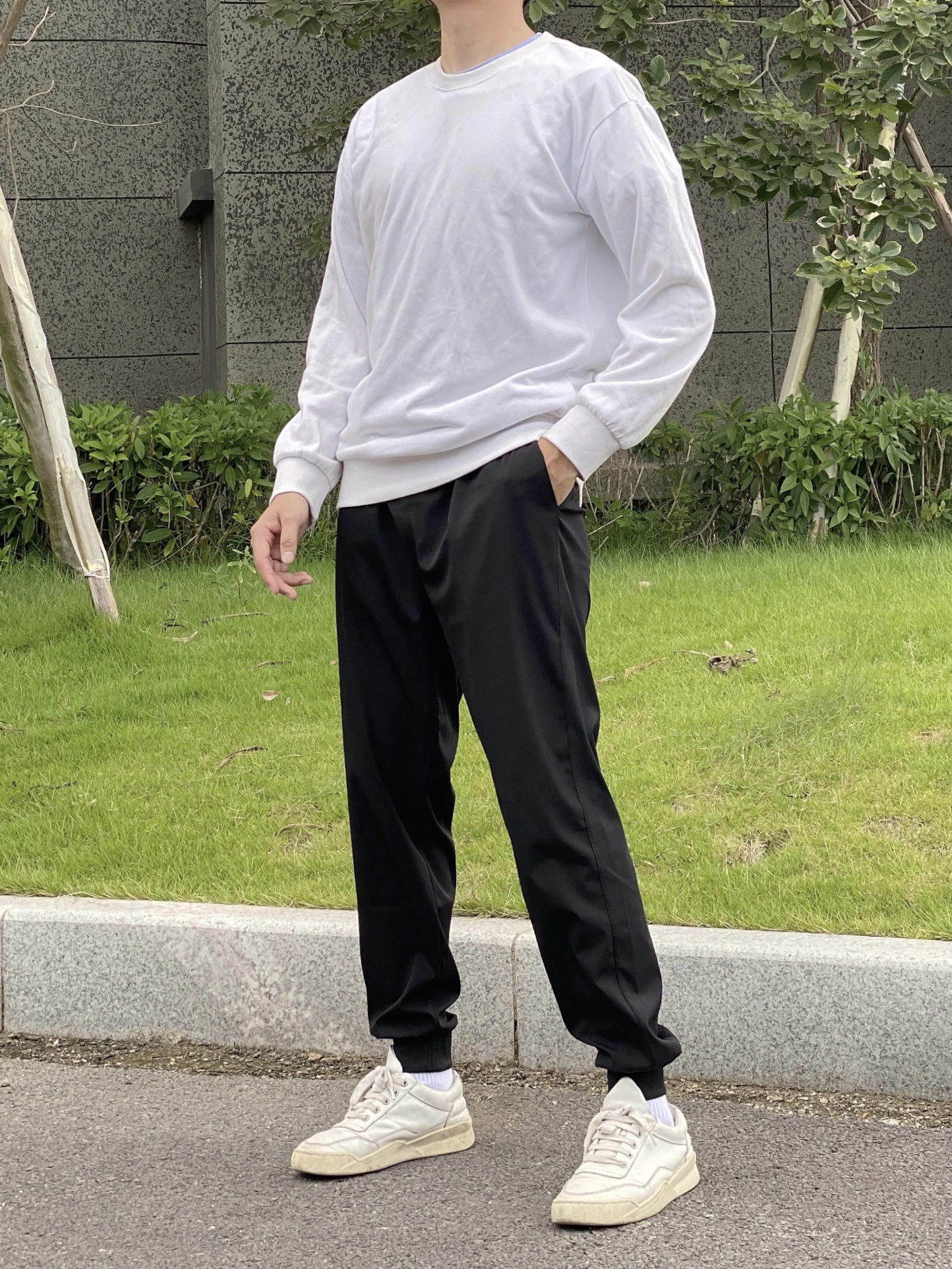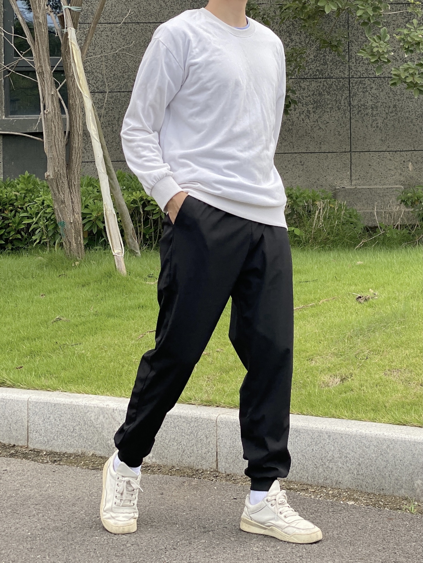 极简的用色搭配上个性的字母印花或者是侧缝拼接设计,大气又不失时尚,再配合修身束脚的裤型设计,使裤子能包容各种身材,完美修饰腿部线条,达到视觉上显高显瘦的效果。