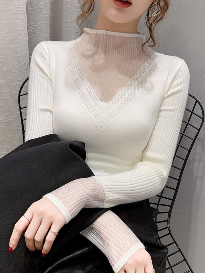 纯色针织一直很秋冬百搭的,搭配不同的下装会有不同的味道,领口和袖拼接蕾丝,可以外穿,冬天的时候可以在大衣里面内搭,推荐。