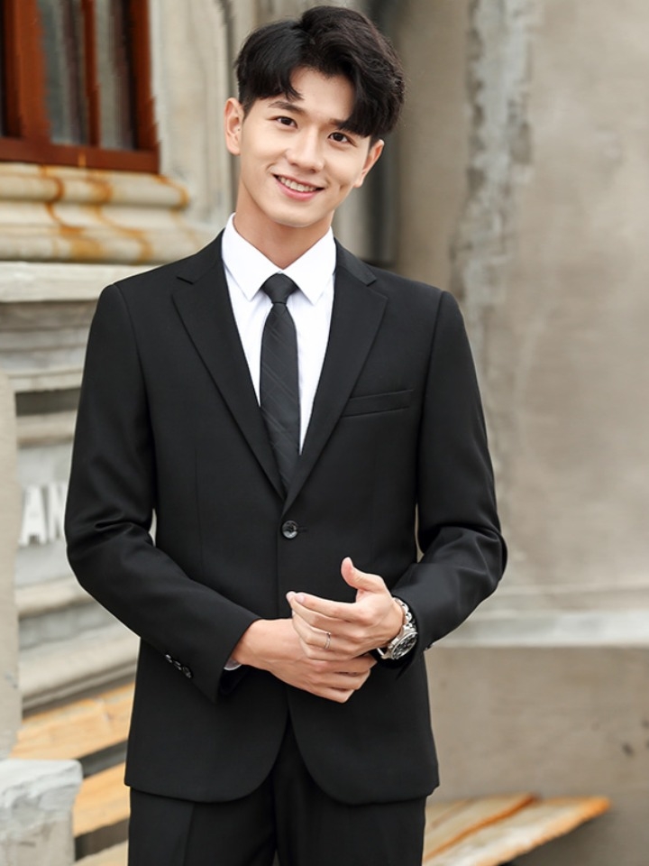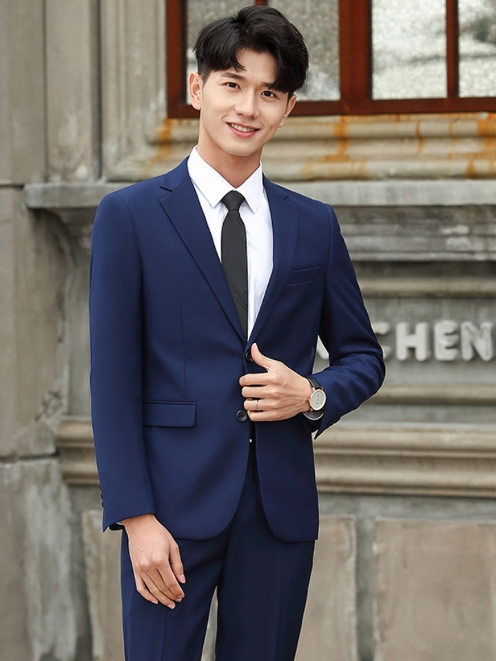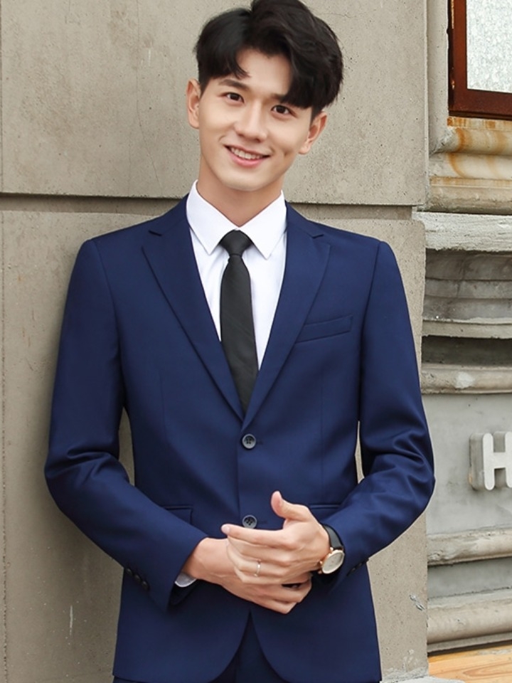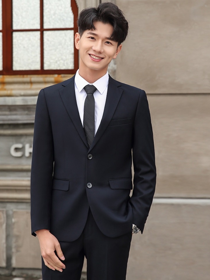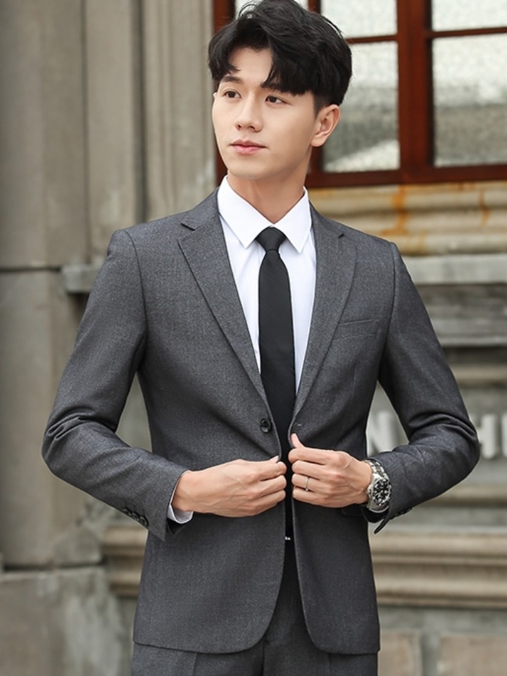 各式各样的西装,款式非常的丰富,不仅彰显出个性感,还能尽显男士的气质,本款西服套装非常舒适百搭,尽显时尚绅士。一般男士在穿着这种西装时要成套穿着,注意裤子不能太长,会显邋遢,配上合适的领带或领结后,则更显得高雅典朴。