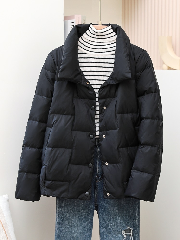 轻薄羽绒服女土短款超轻,款式好看穿着舒服。致的格子内里口袋,口袋缘边针线缝合紧实细腻,时尚耐用,简简单单自成风格。