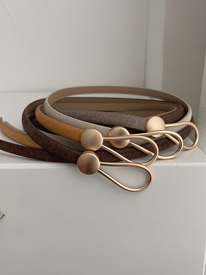 夏季搭配直筒宽松连衣裙的好帮手,莫过于纤细的牛皮腰带了,加上圆润的金属装饰,让你的身材被别人锁定,可以起到吸睛的作用,多色可选,满足你的搭配功力。