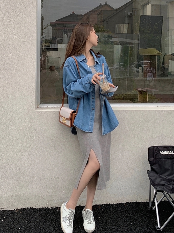 简约的高腰设计,搭配上修身的版型,上身显瘦又显高。