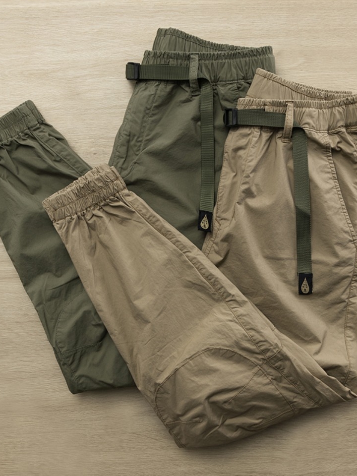 工装裤采用纯棉面料,质感十足,纹理清晰,有一定的厚度,但却又不算很厚,裤脚则采用松紧束口设计,充分彰显干练沉稳的硬汉风范。
