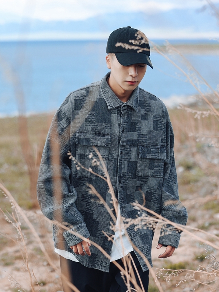 这款长袖衬衫优选双面磨毛纯棉格仔面料,面料手感柔软细腻,上身舒适有型。衬衫有多处拼接设计,拼接处都采用做旧磨破毛边设计。