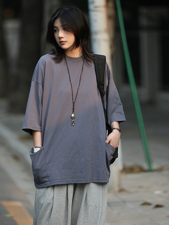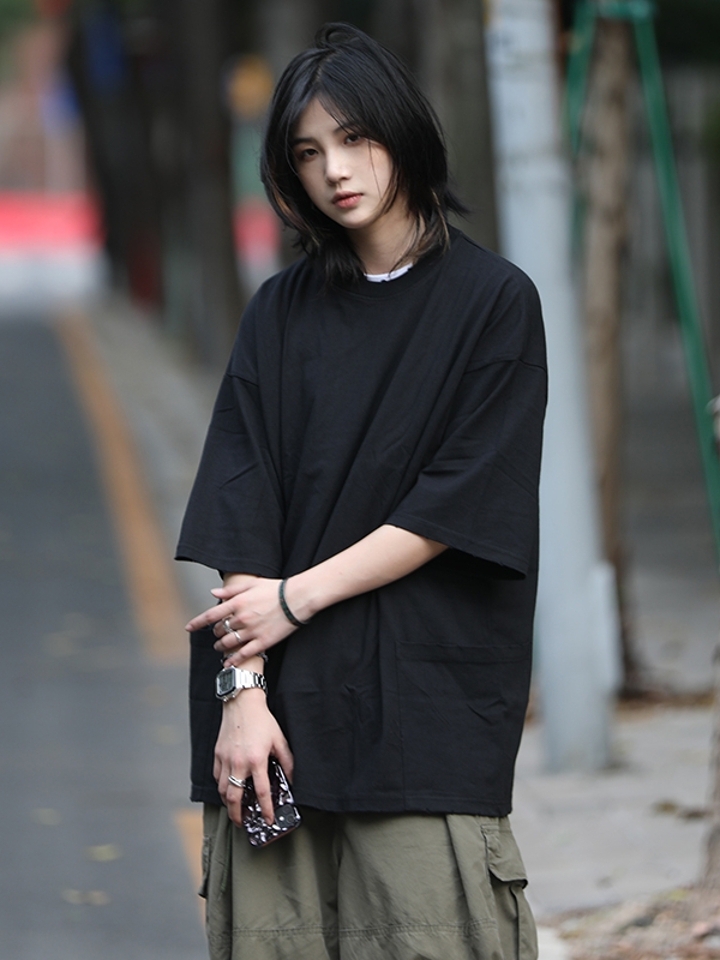 这款t恤是简约的风格,宽松的版型,时尚百搭,胸前的字母印花,很有个性,搭配牛仔裤或者短裤都很好看。